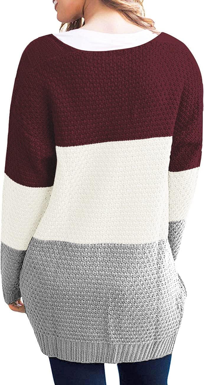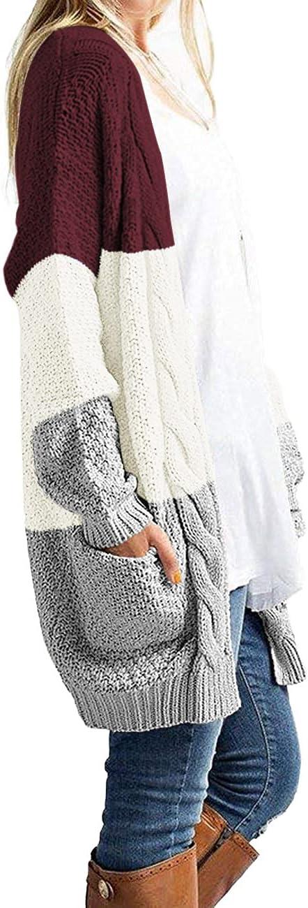 GRECERELLE Women's Loose Open Front Long Sleeve Solid Color Knit Cardigans Sweater Blouses With Packets