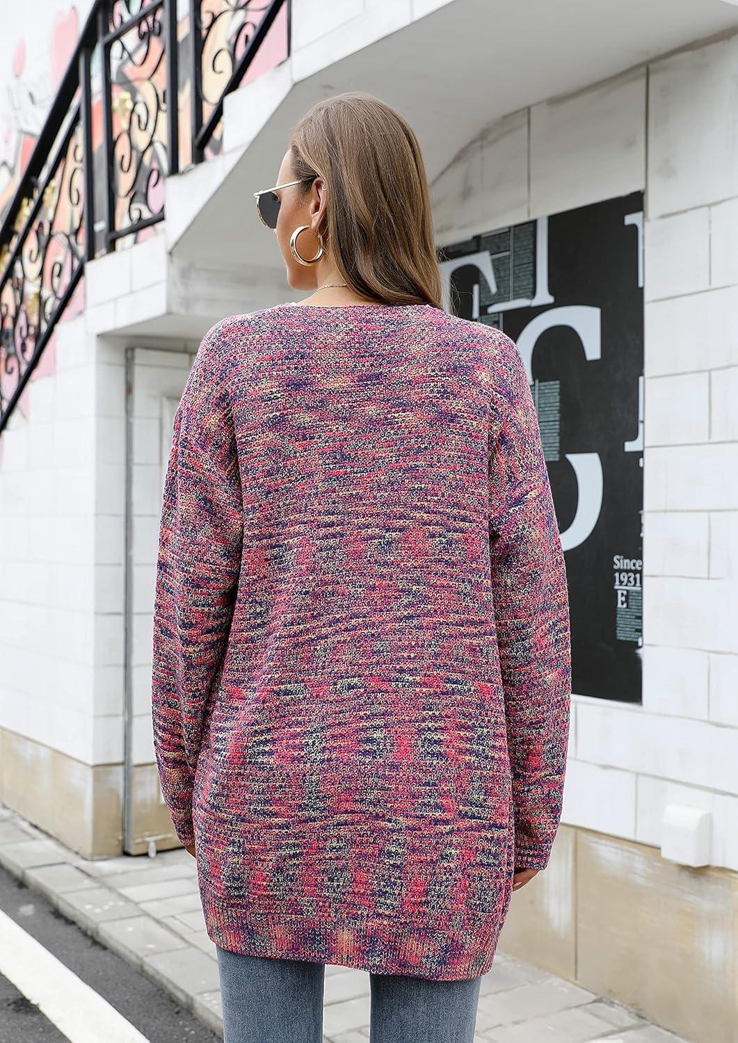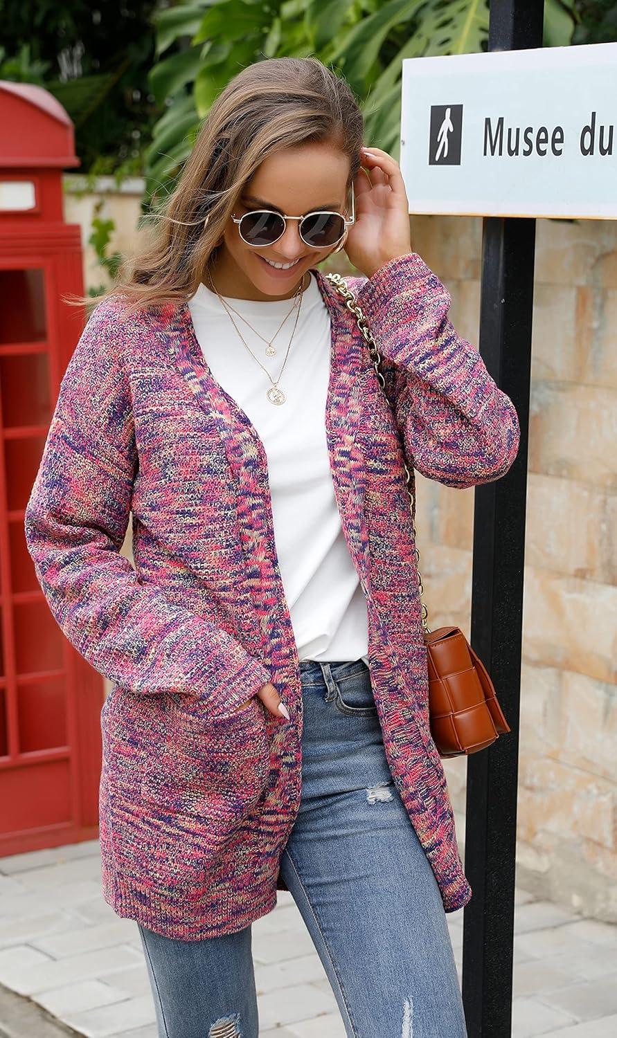 GRECERELLE Women's Loose Open Front Long Sleeve Solid Color Knit Cardigans Sweater Blouses With Packets