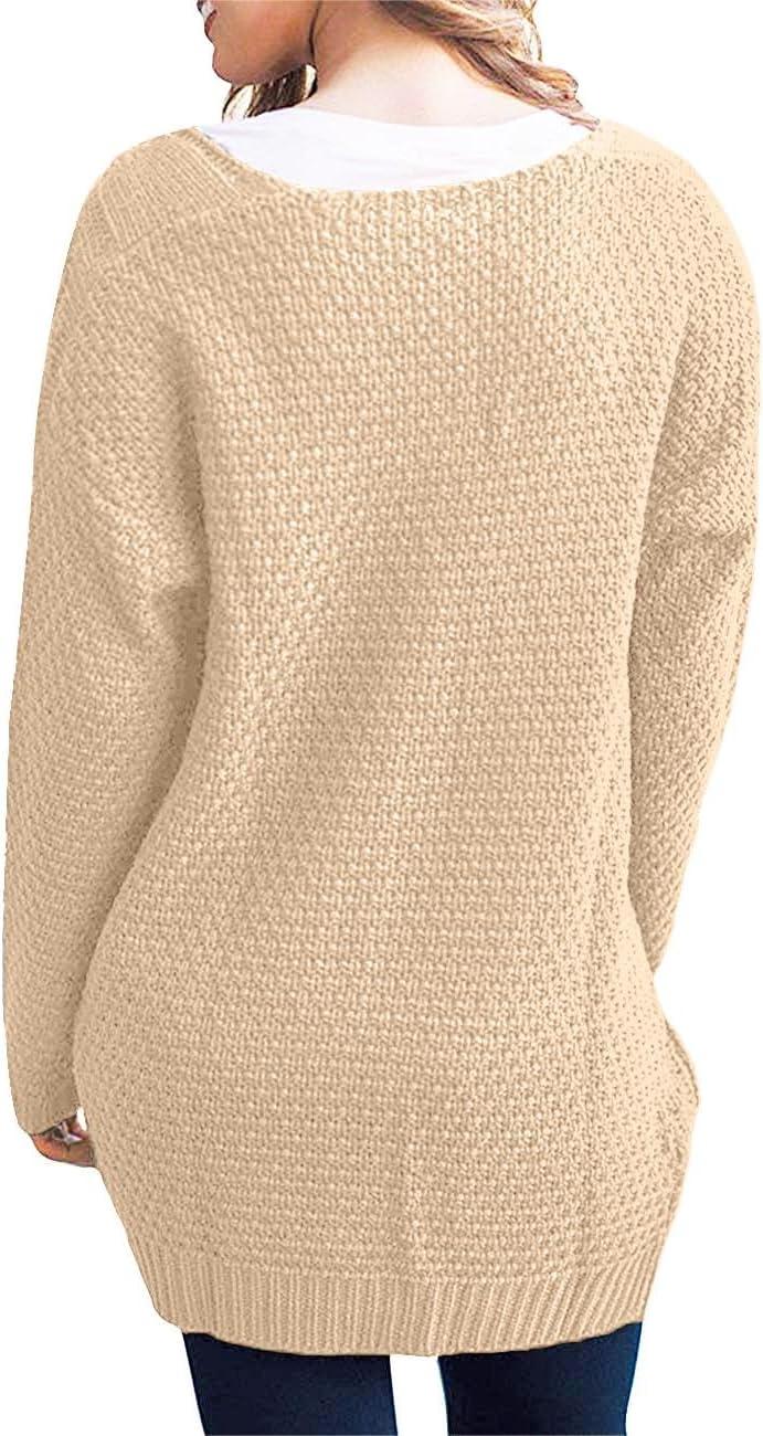 GRECERELLE Women's Loose Open Front Long Sleeve Solid Color Knit Cardigans Sweater Blouses With Packets
