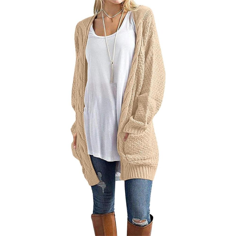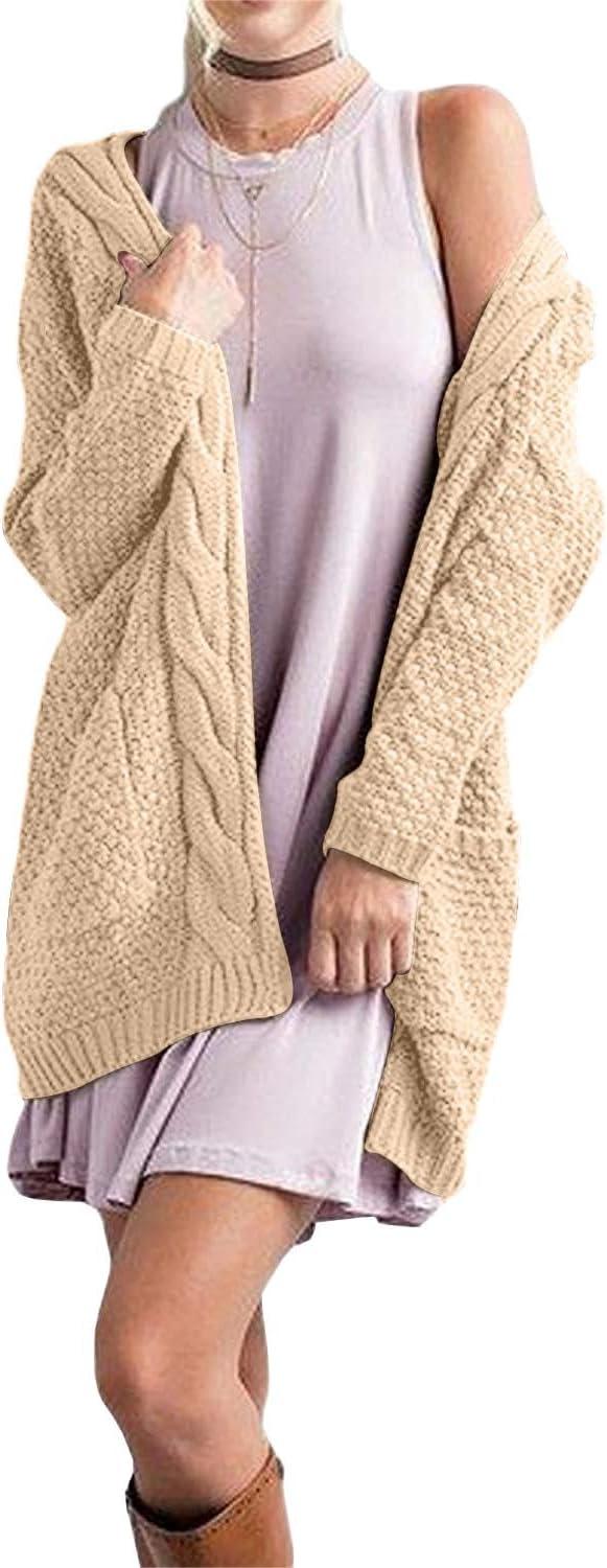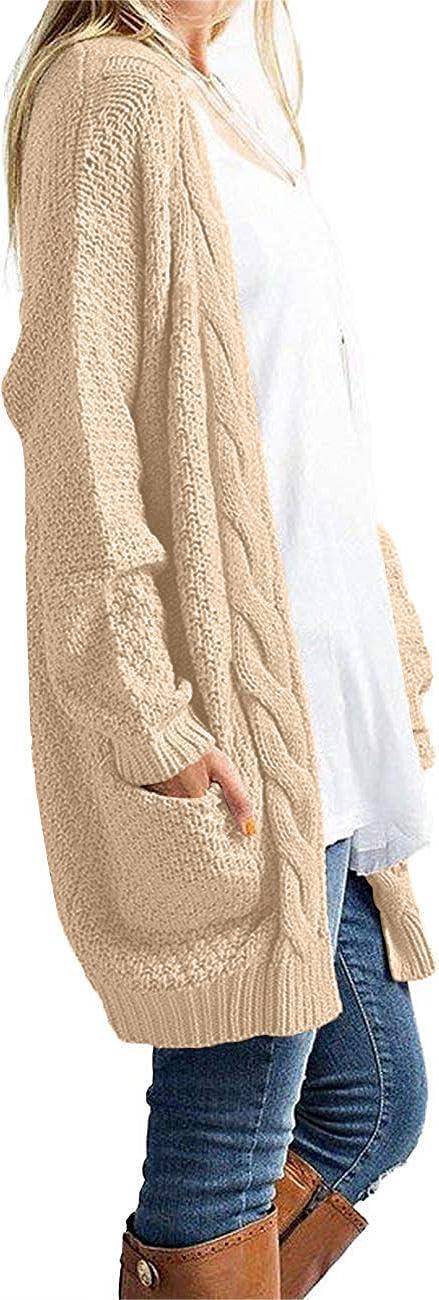 GRECERELLE Women’s Loose Open Front Long Sleeve Chunky Knit Cable Cardigans Sweater with Pockets(29 Beige)