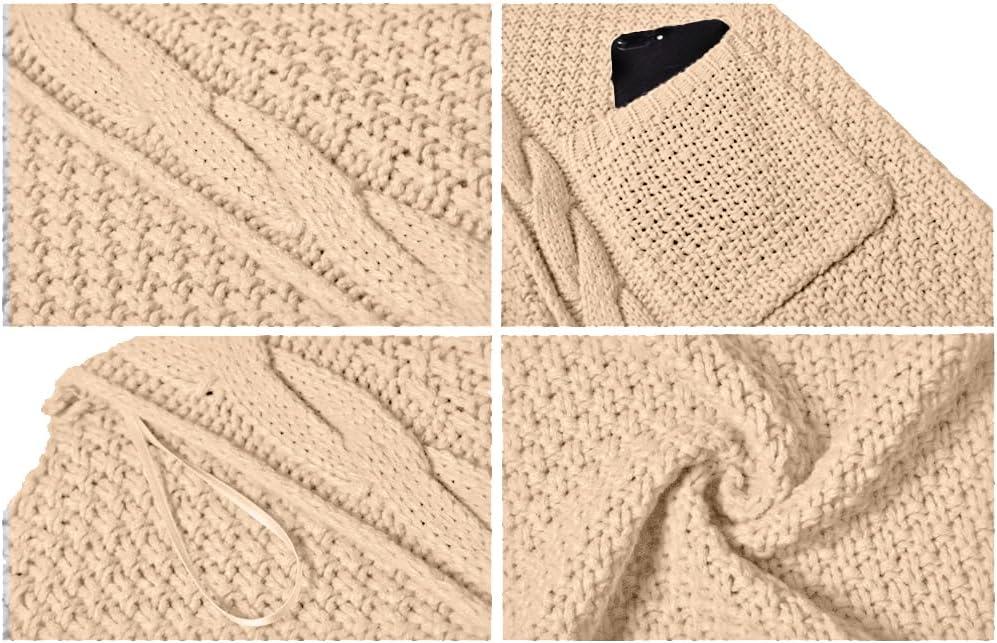 GRECERELLE Women’s Loose Open Front Long Sleeve Chunky Knit Cable Cardigans Sweater with Pockets(31 Apricot)