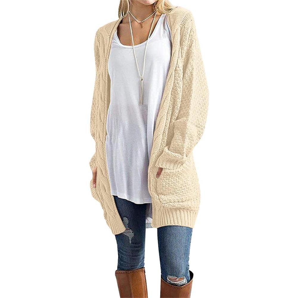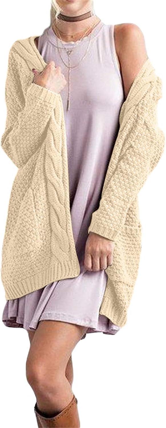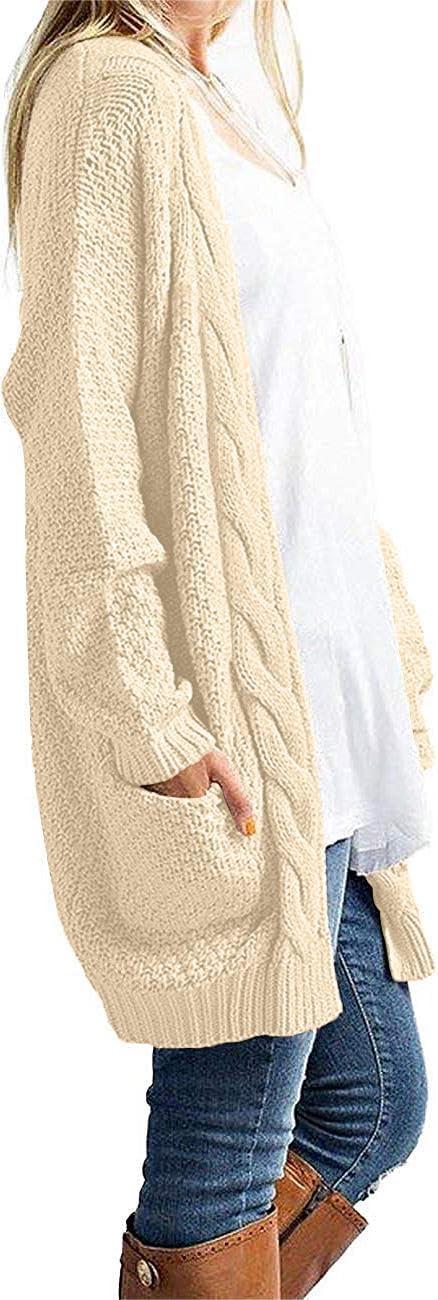 GRECERELLE Women’s Loose Open Front Long Sleeve Chunky Knit Cable Cardigans Sweater with Pockets(33 Off White)