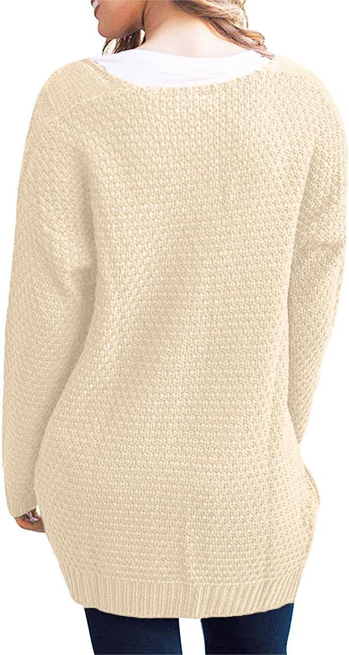 GRECERELLE Women's Loose Open Front Long Sleeve Solid Color Knit Cardigans Sweater Blouses With Packets