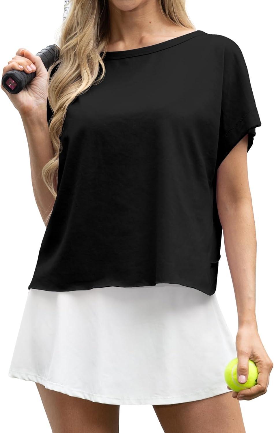 GRECERELLE Women’s Open Back Workout Tops Backless Athletic Shirts Casual Crop Running Tee Y2k Yoga(A-black)