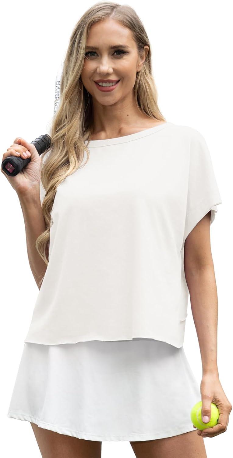 GRECERELLE Women’s Open Back Workout Tops Backless Athletic Shirts Casual Crop Running Tee Y2k Yoga(A-white)