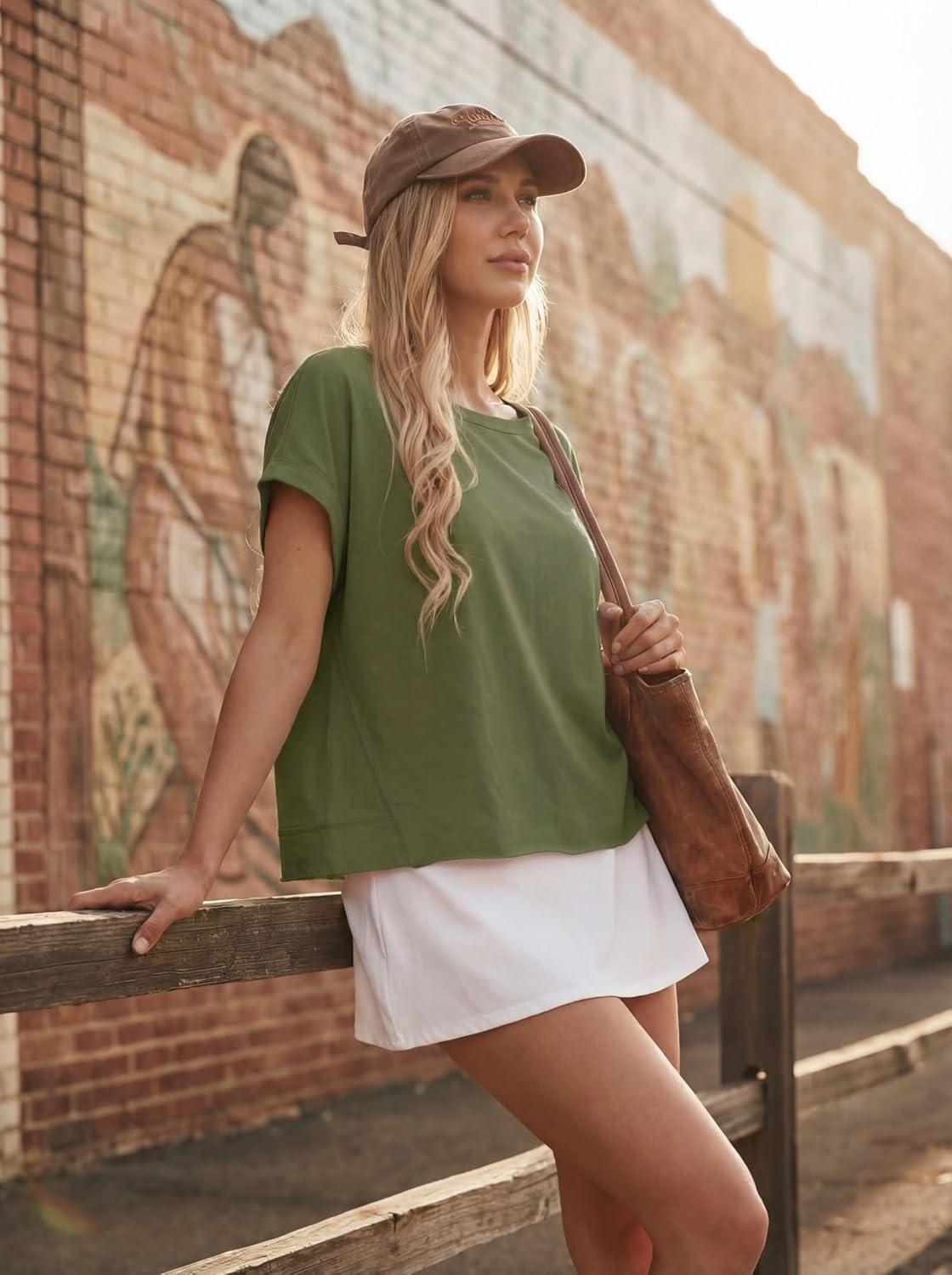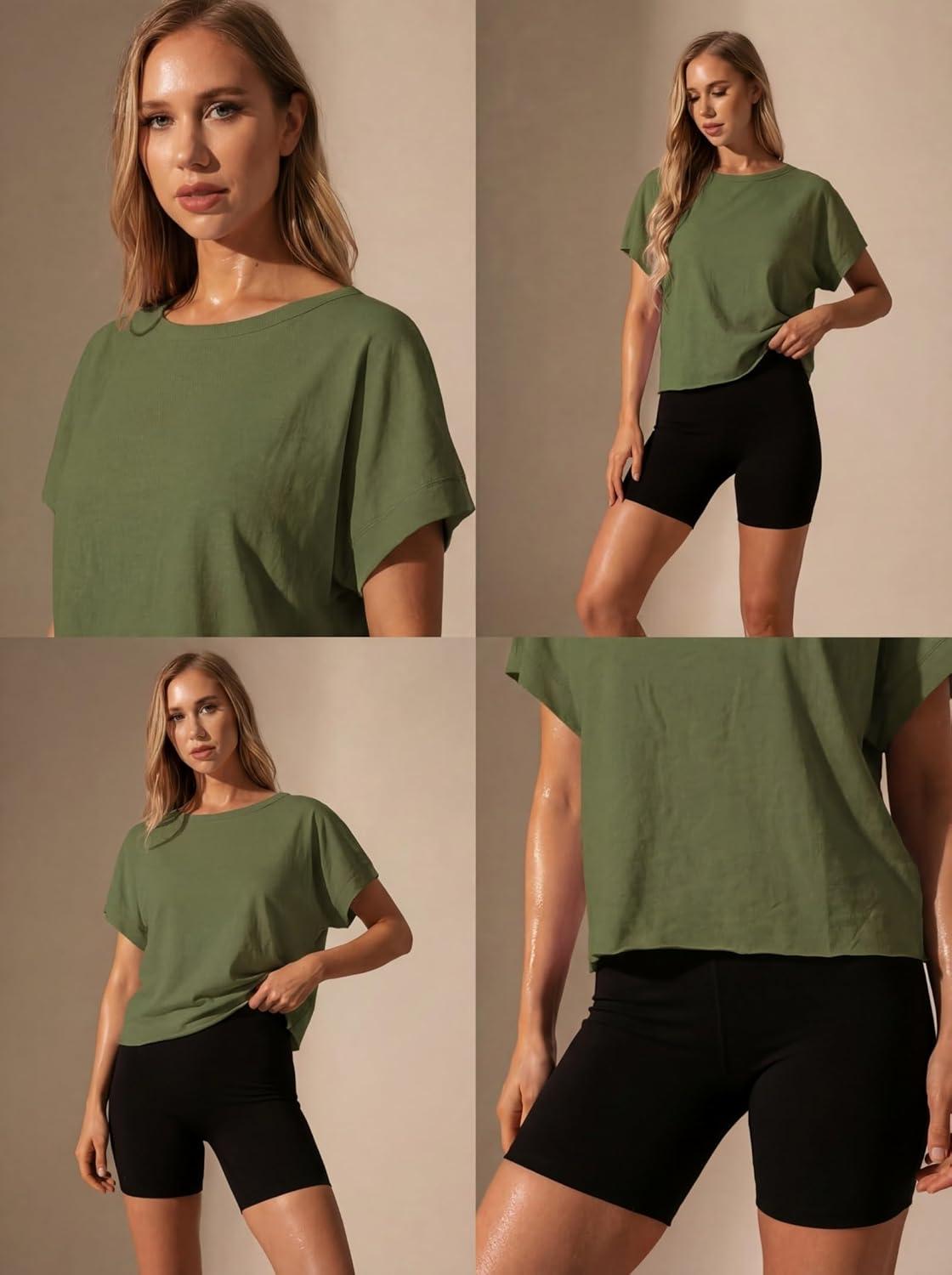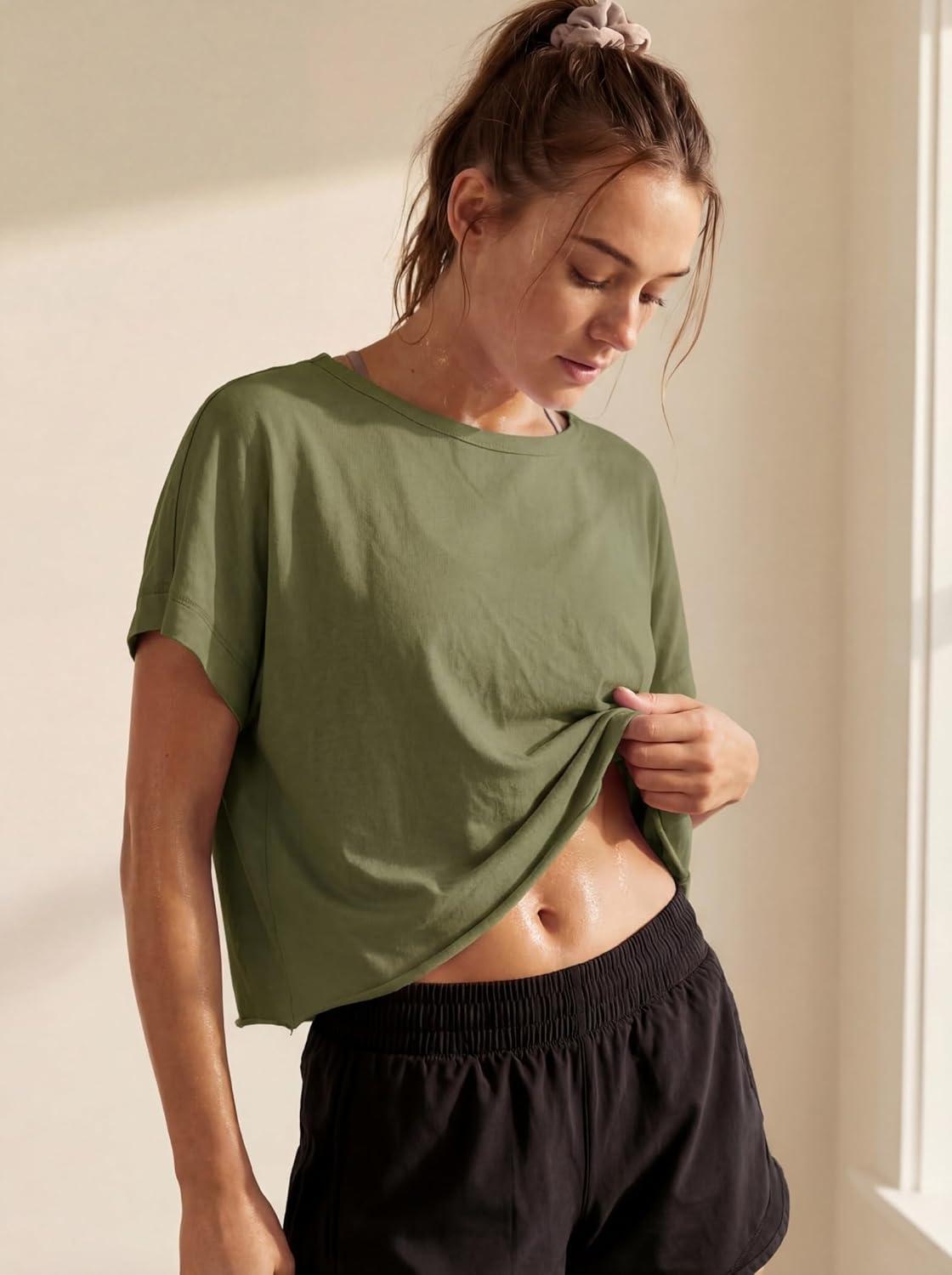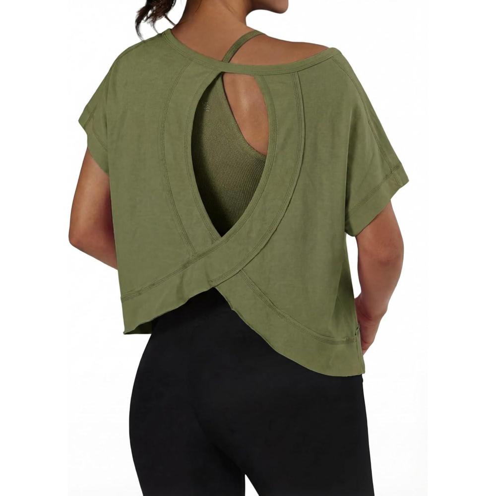 GRECERELLE Women's Open Back Workout Tops Backless Athletic Shirts Casual Crop Running Tee Y2k Yoga(Army Green)