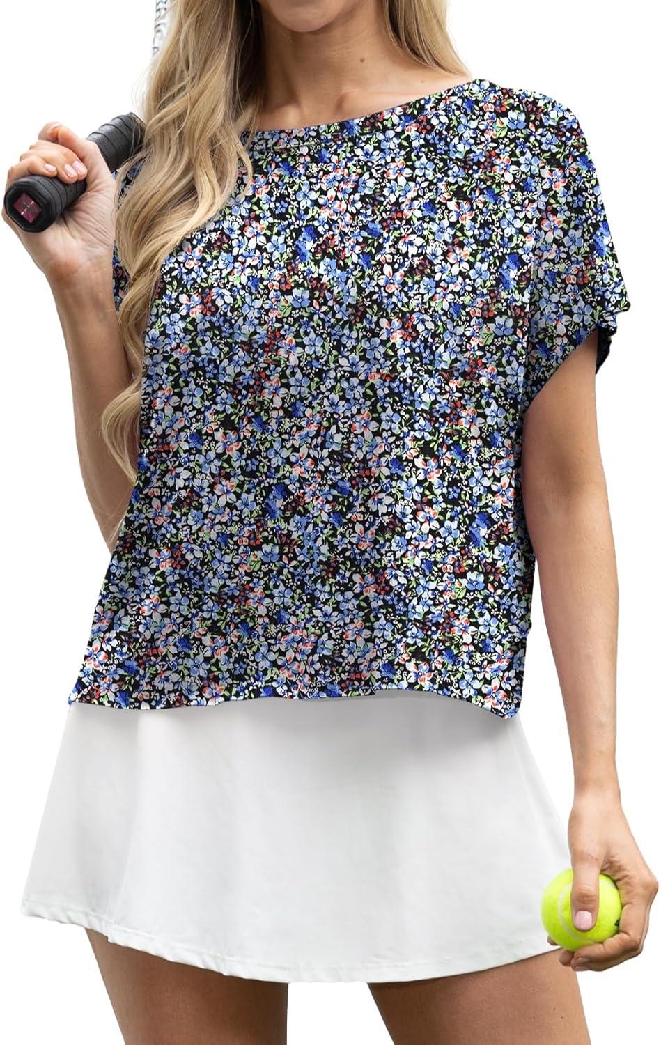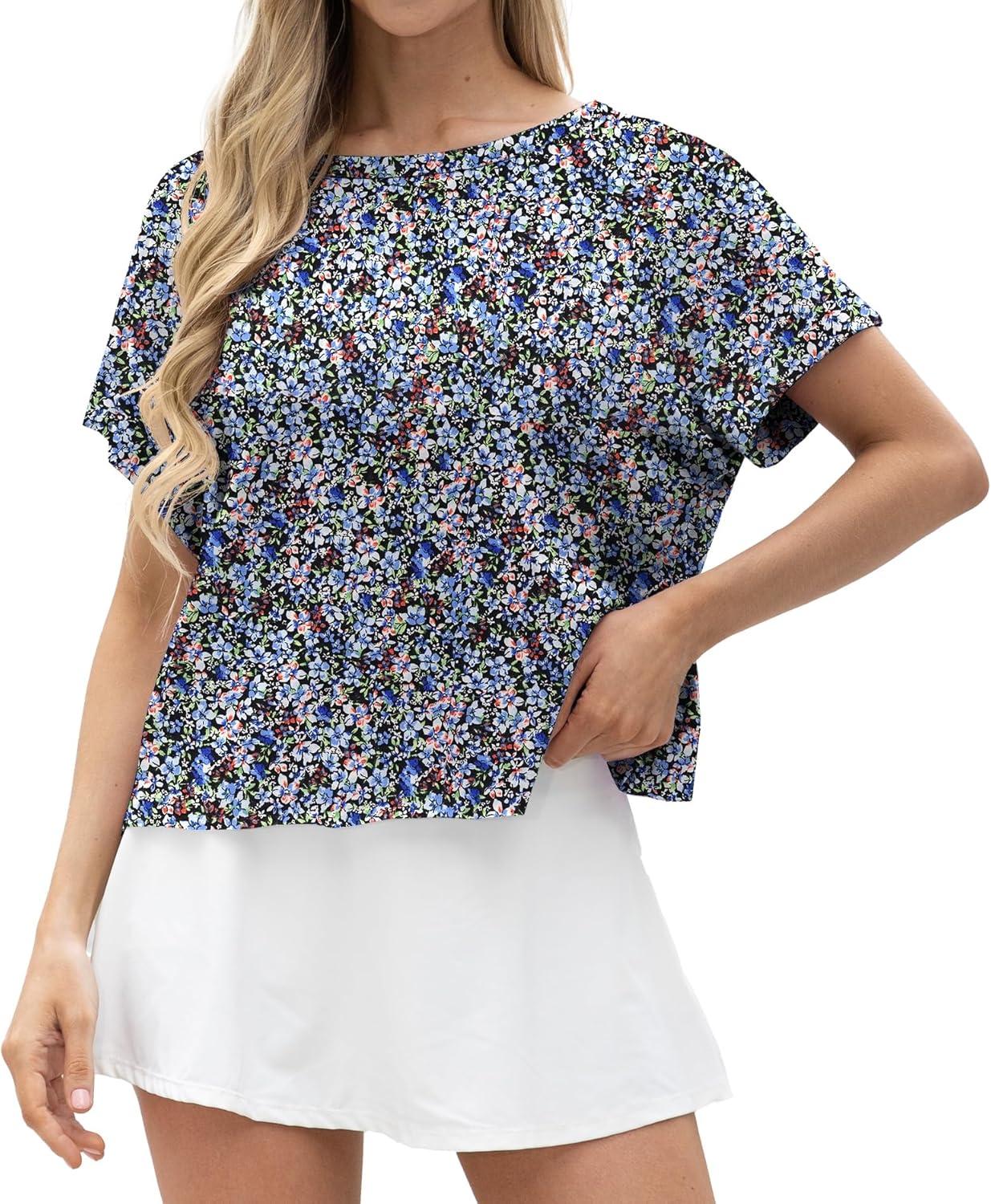 GRECERELLE Women’s Open Back Workout Tops Backless Athletic Shirts Casual Crop Running Tee Y2k Yoga(Black Color Hibiscus)