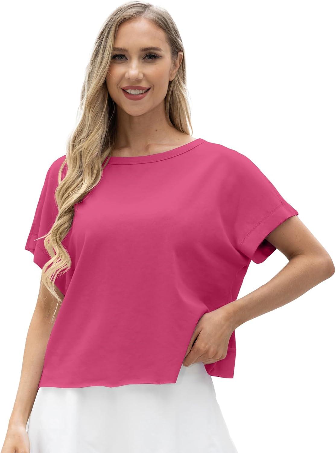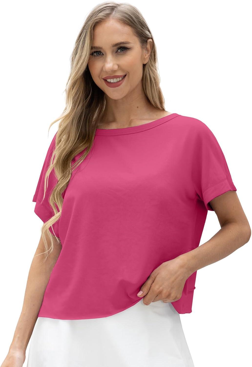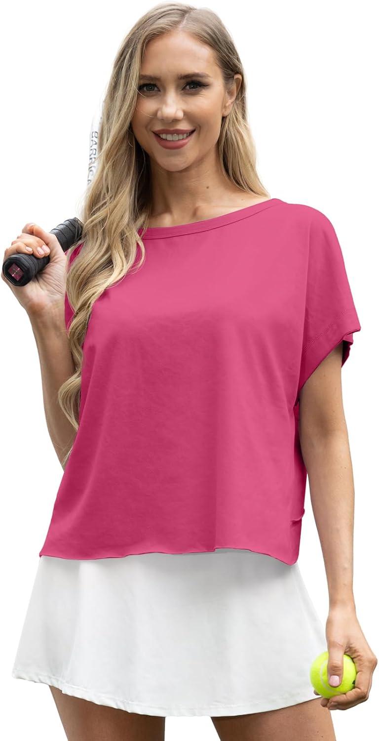 GRECERELLE Women’s Open Back Workout Tops Backless Athletic Shirts Casual Crop Running Tee Y2k Yoga(Hot Pink)