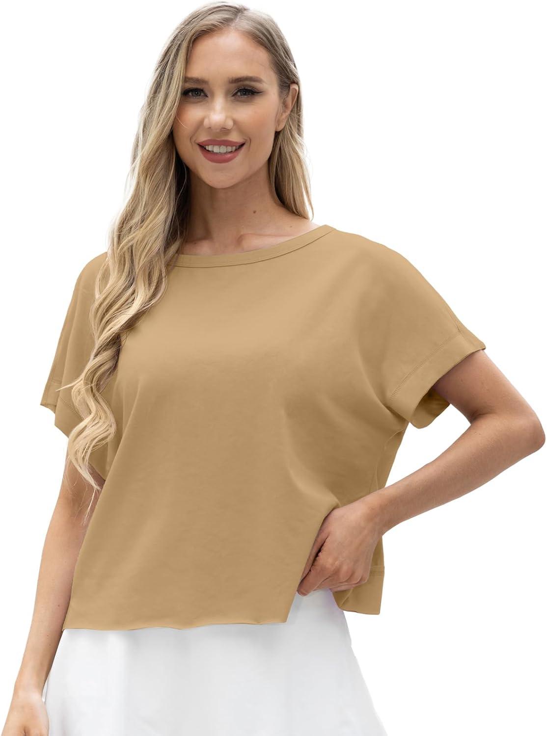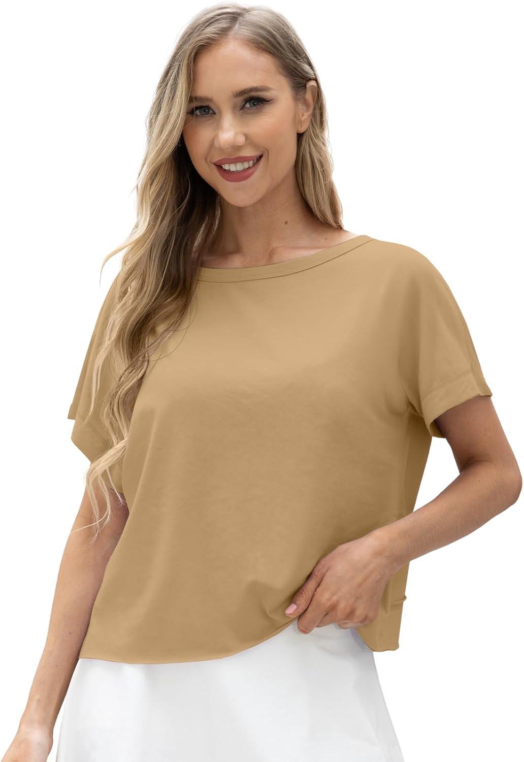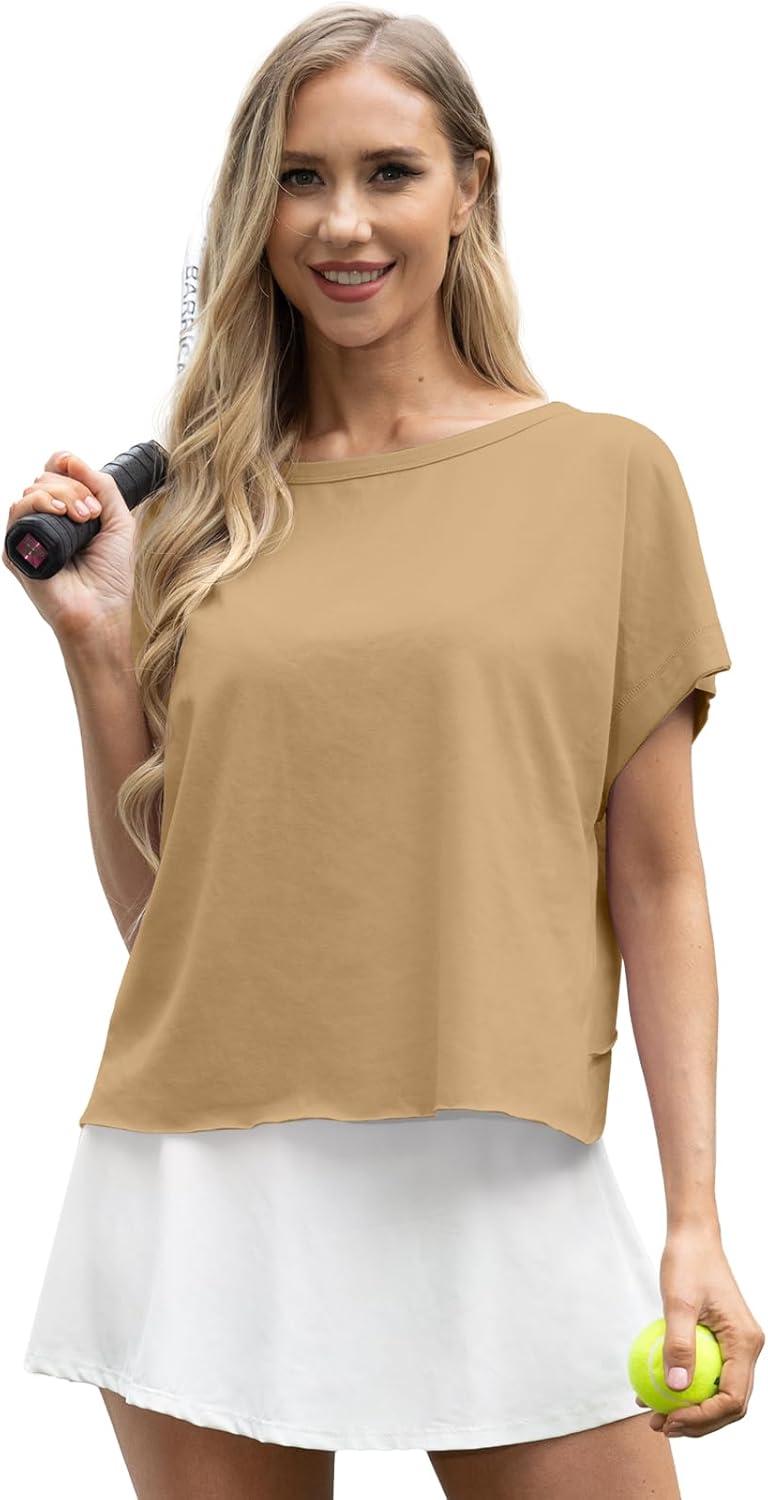 GRECERELLE Women’s Open Back Workout Tops Backless Athletic Shirts Casual Crop Running Tee Y2k Yoga(Khaki)