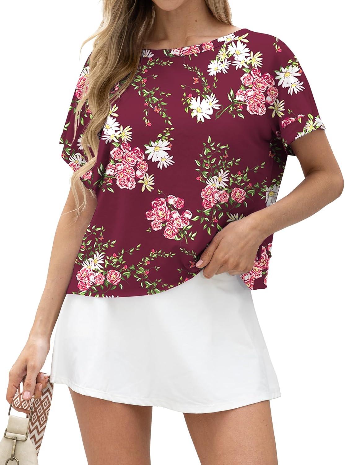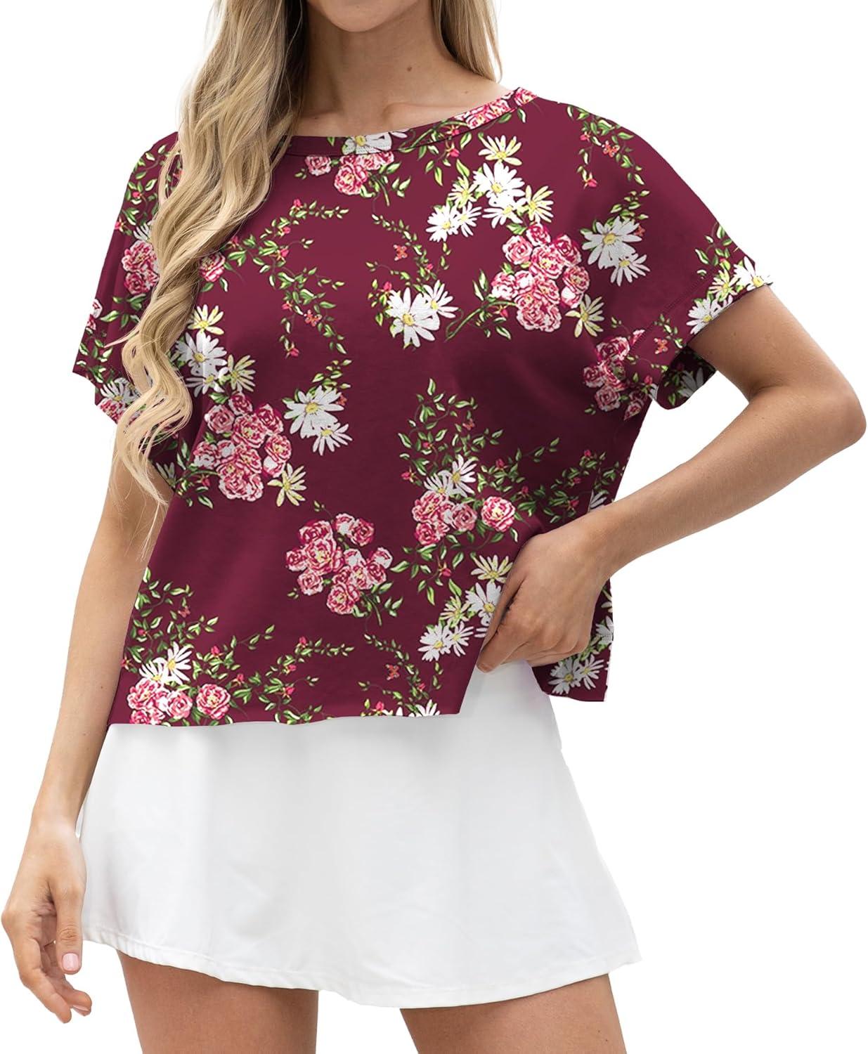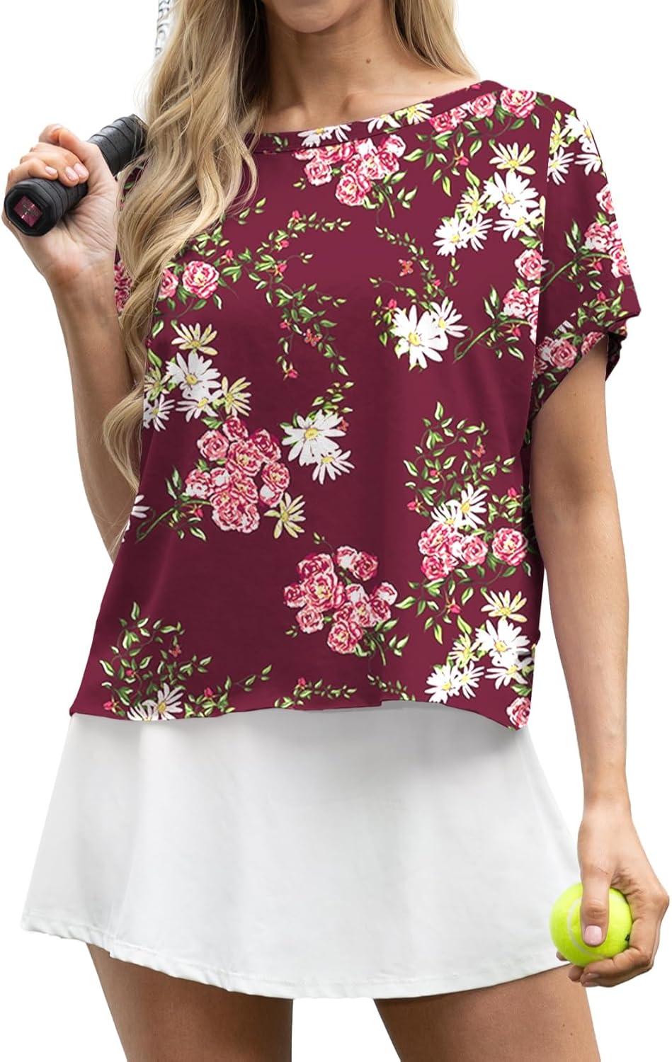 GRECERELLE Women’s Open Back Workout Tops Backless Athletic Shirts Casual Crop Running Tee Y2k Yoga(Navy White Flower)