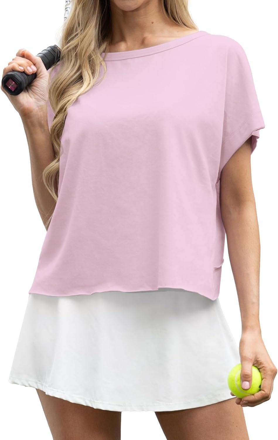GRECERELLE Women’s Open Back Workout Tops Backless Athletic Shirts Casual Crop Running Tee Y2k Yoga(Pink)