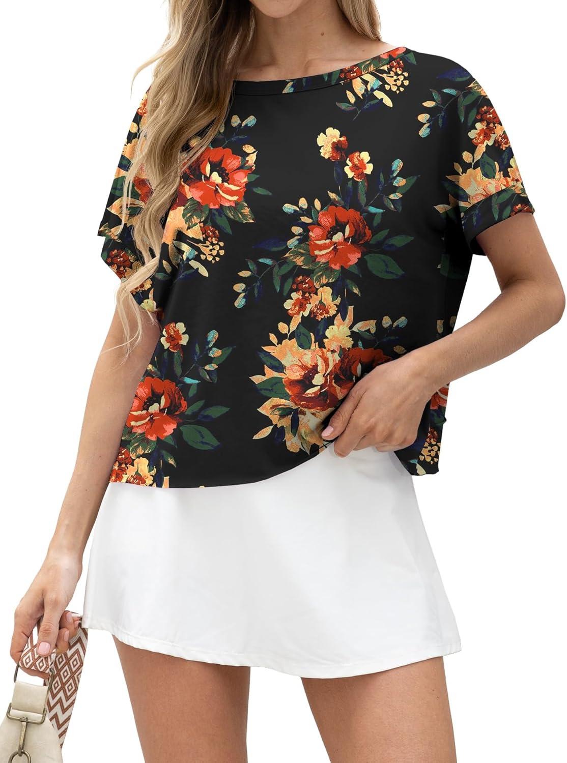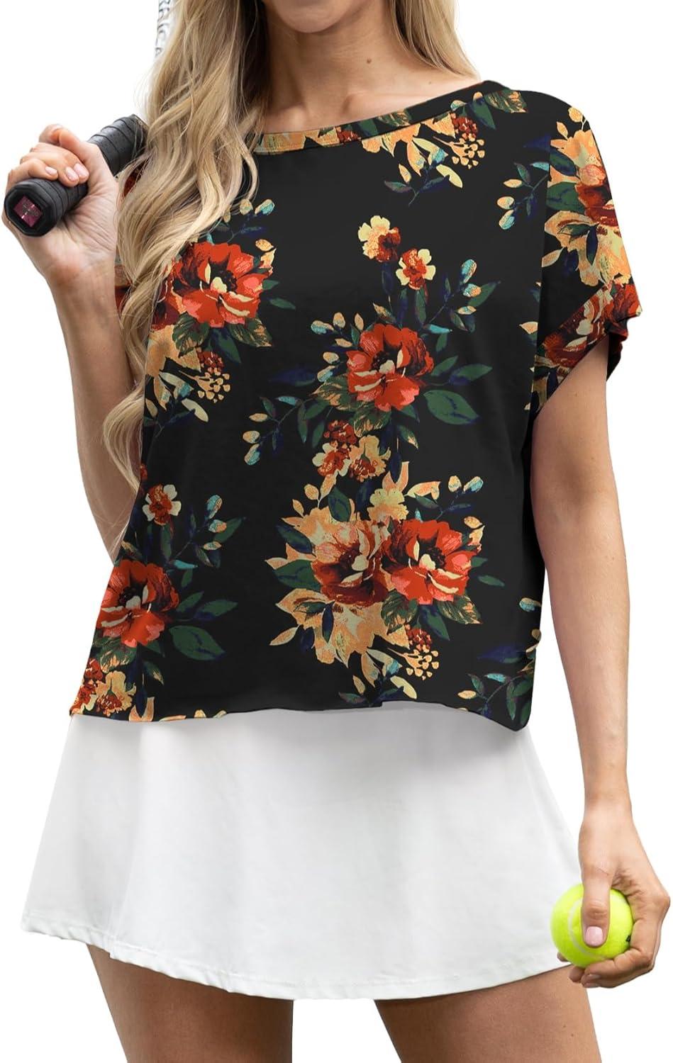 GRECERELLE Women’s Open Back Workout Tops Backless Athletic Shirts Casual Crop Running Tee Y2k Yoga(Red Sunflower)