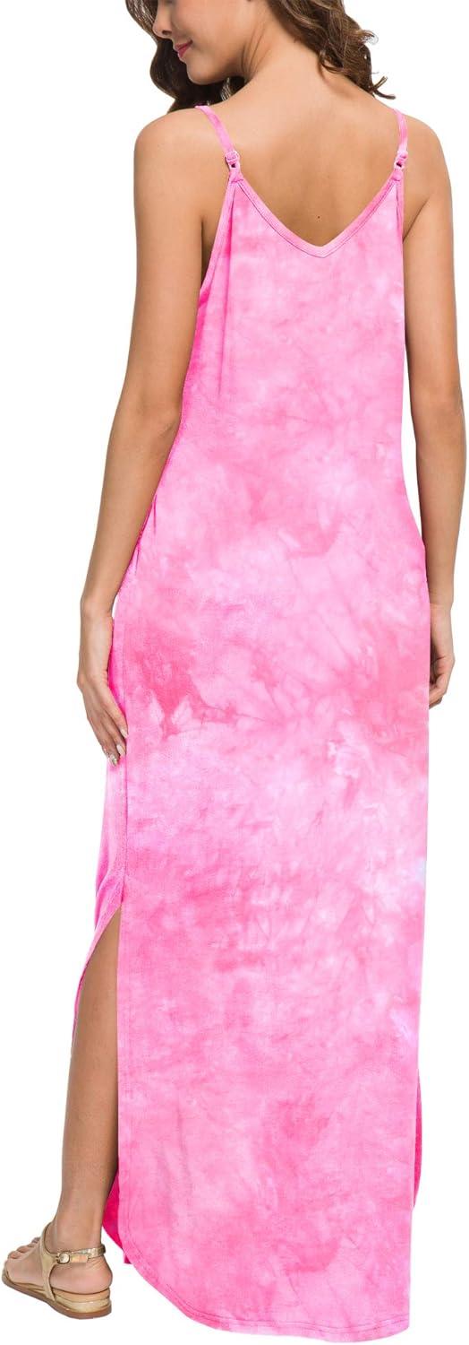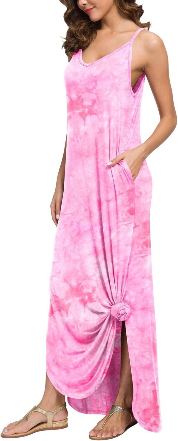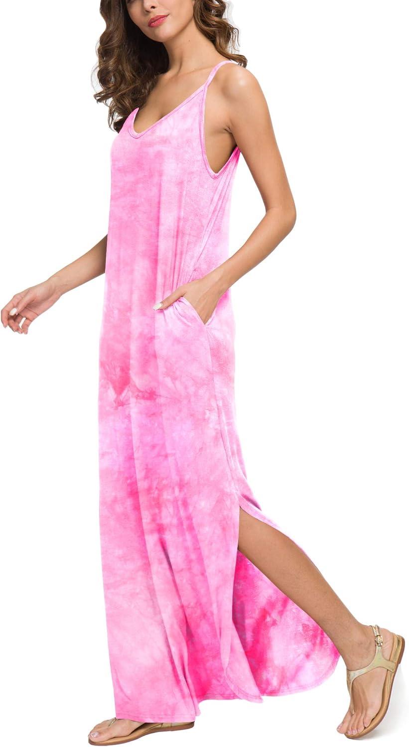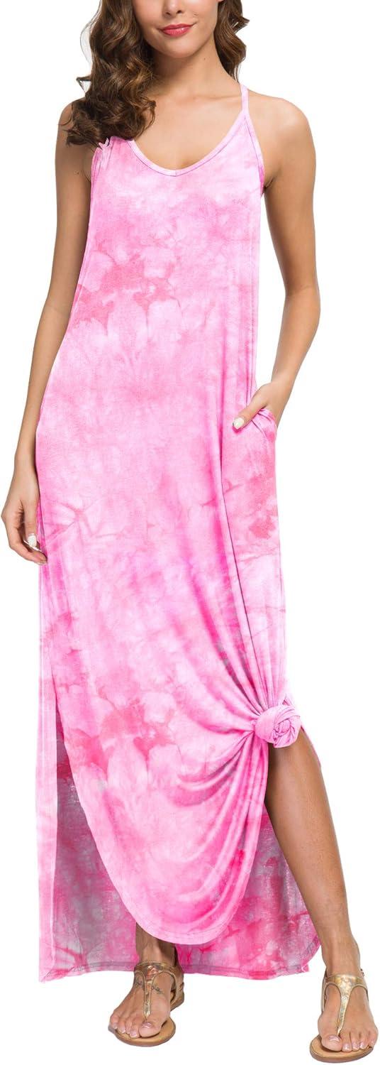GRECERELLE Women’s Summer Casual Loose Dress Beach Cover Up Long Cami Maxi Dresses with Pocket(22 Fp Tie Dye Rose Red)