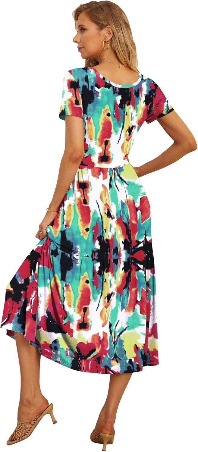 imageGRECERELLE Womens Summer Casual Short Sleeve Crewneck Tiered Flowy Maxi Long Dress with Pockets S2XLWhite Ink Red