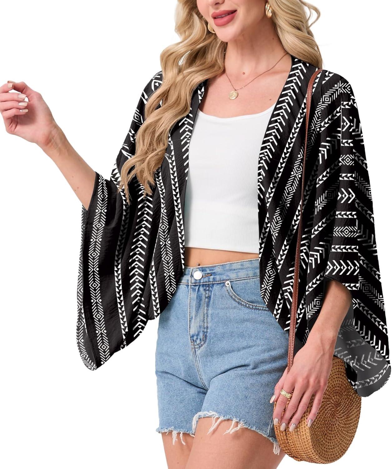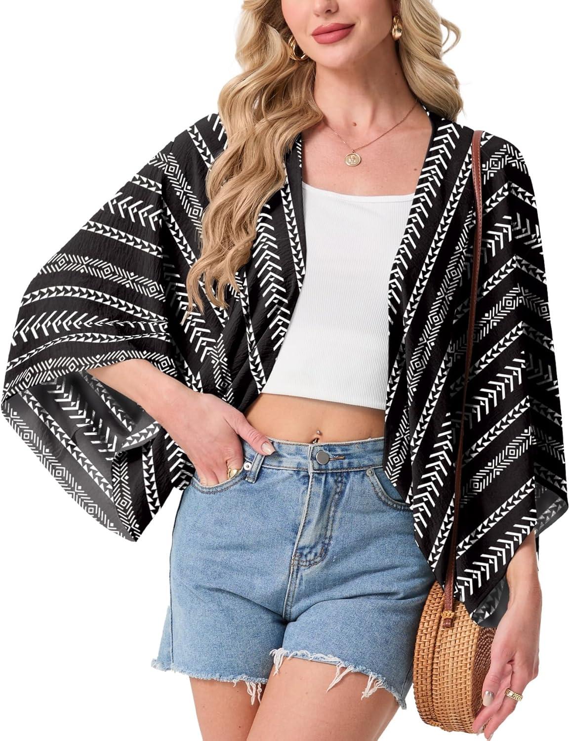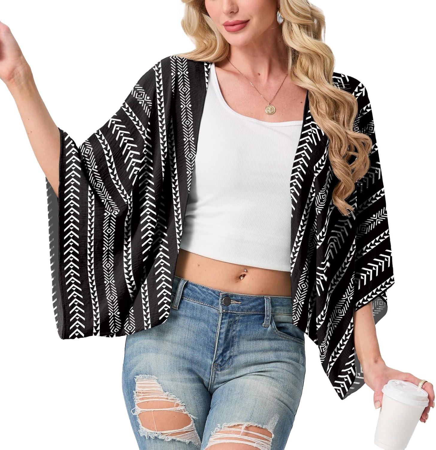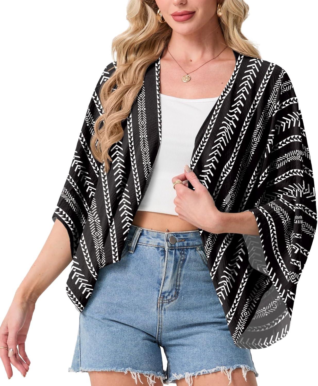 STYLISH KIMONO DESIGN: Featuring an open-front design and wide kimono-style sleeves, this shrug creates a relaxed and elegant silhouette. It adds a pop of style to basic outfits like tank tops, sleeveless dresses, or casual jeans while providing just the right amount of coverage.