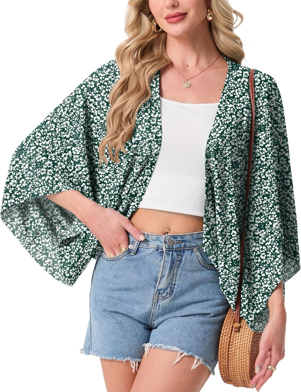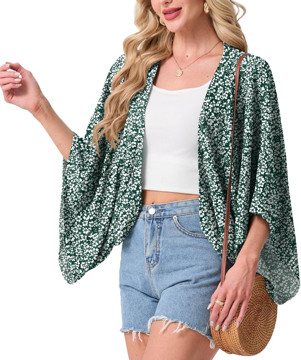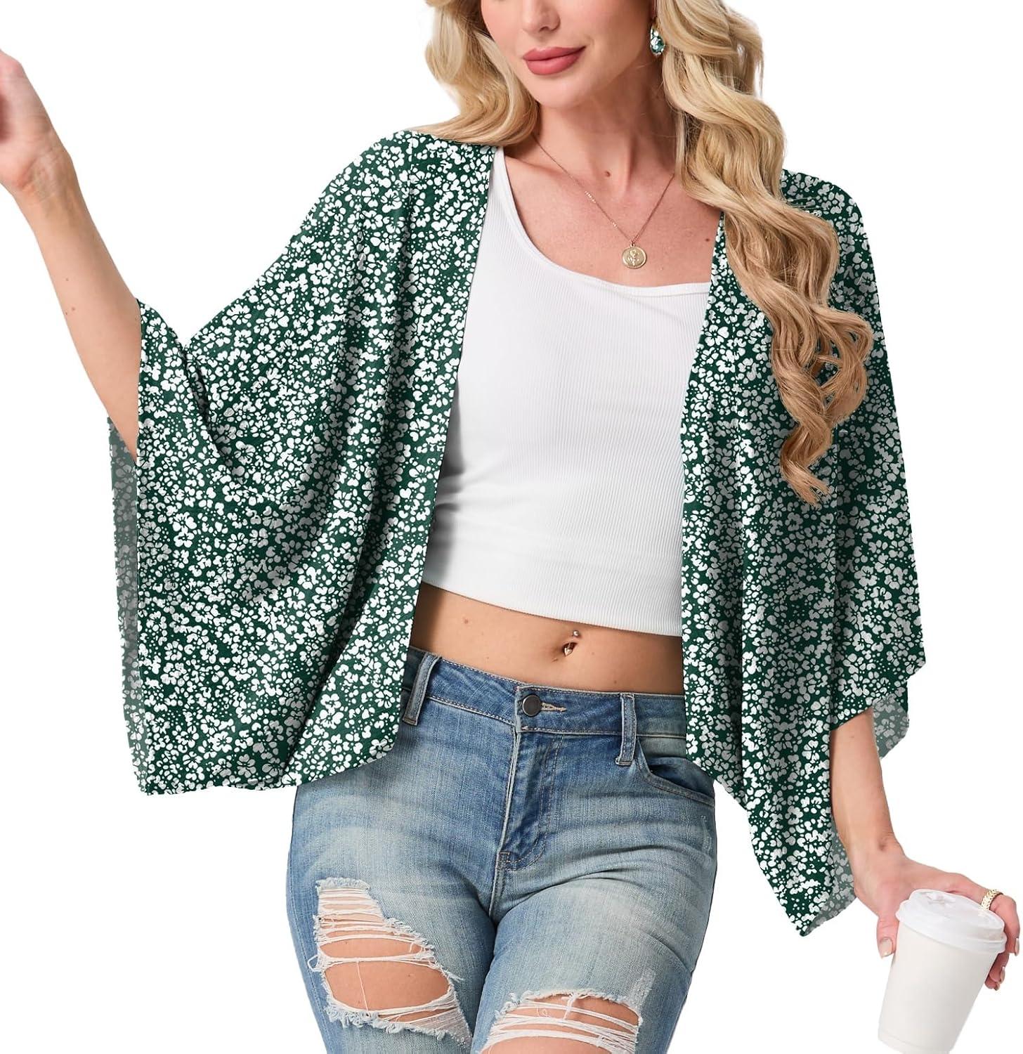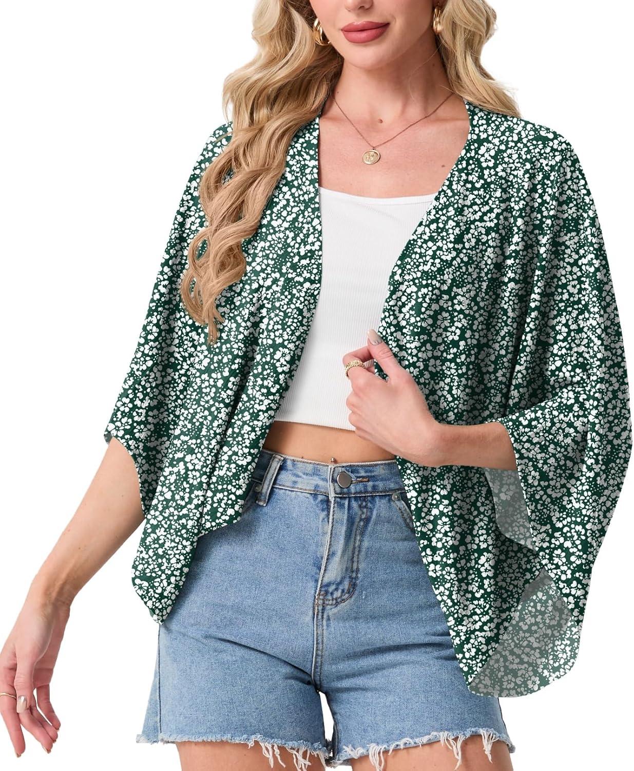 STYLISH KIMONO DESIGN: Featuring an open-front design and wide kimono-style sleeves, this shrug creates a relaxed and elegant silhouette. It adds a pop of style to basic outfits like tank tops, sleeveless dresses, or casual jeans while providing just the right amount of coverage.
