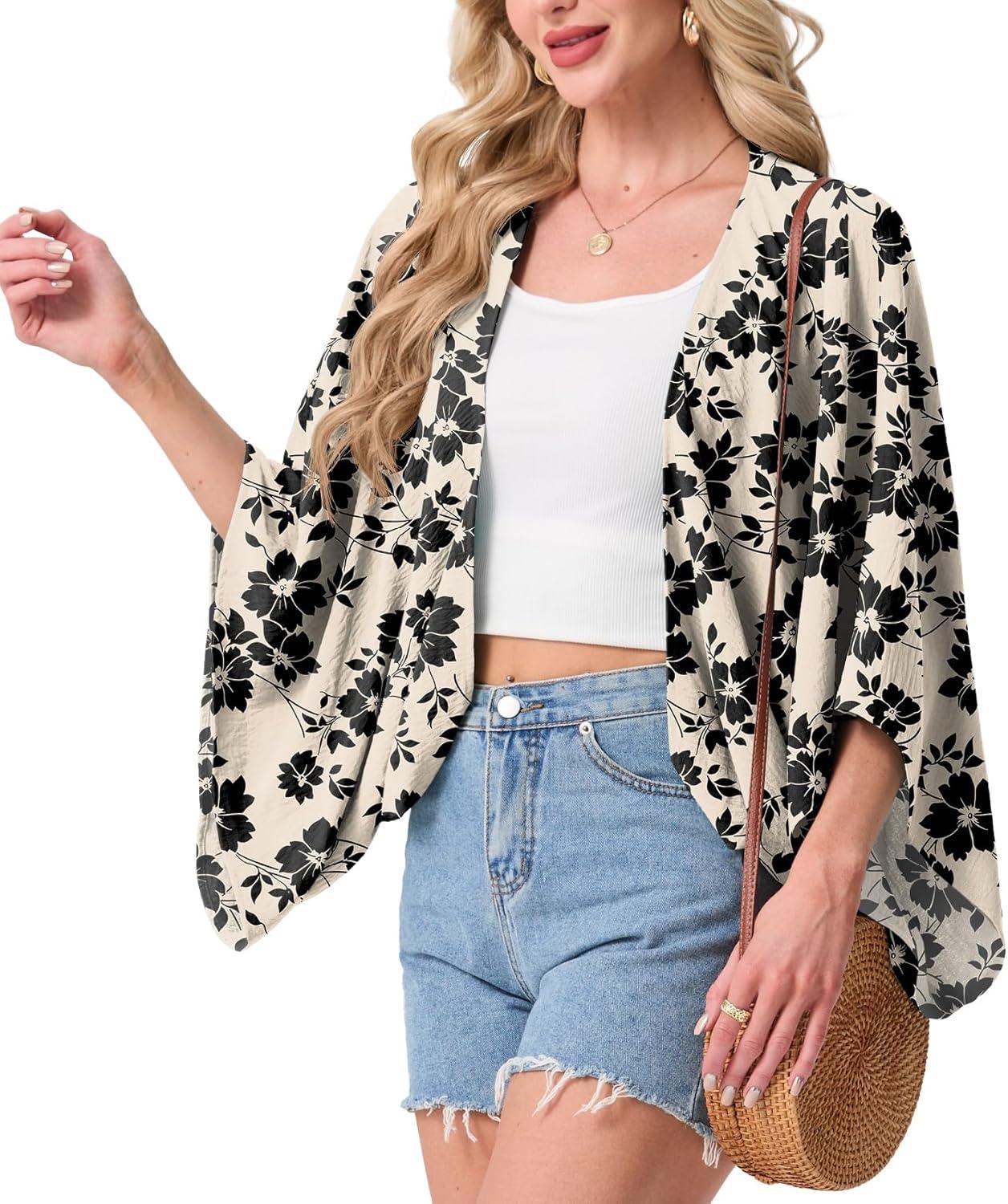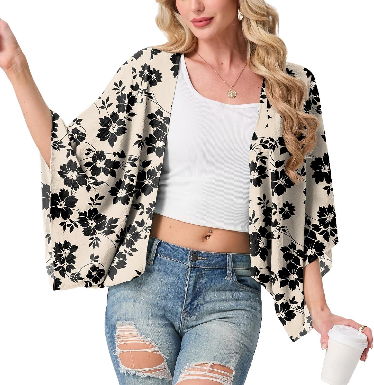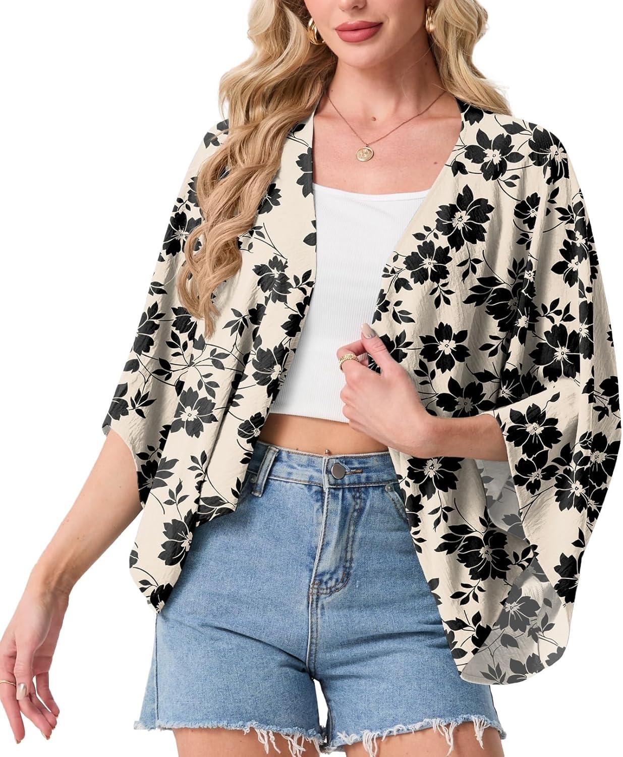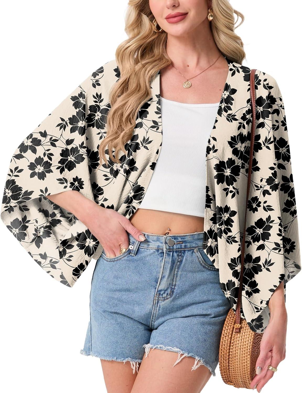 STYLISH KIMONO DESIGN: Featuring an open-front design and wide kimono-style sleeves, this shrug creates a relaxed and elegant silhouette. It adds a pop of style to basic outfits like tank tops, sleeveless dresses, or casual jeans while providing just the right amount of coverage.