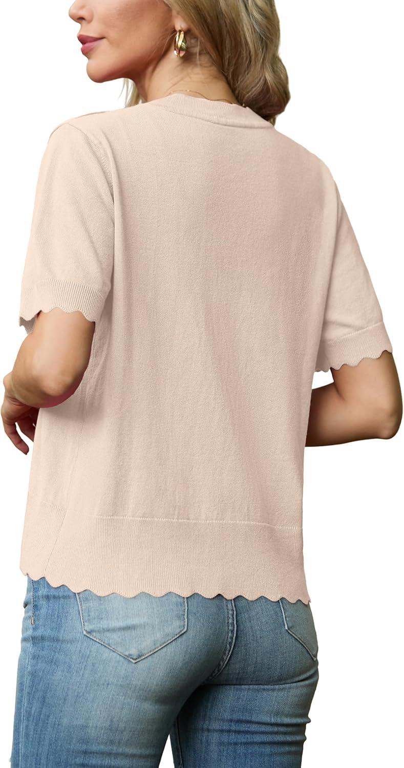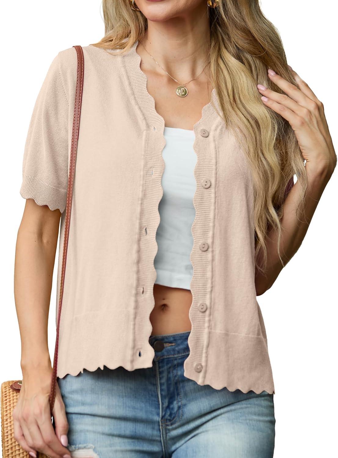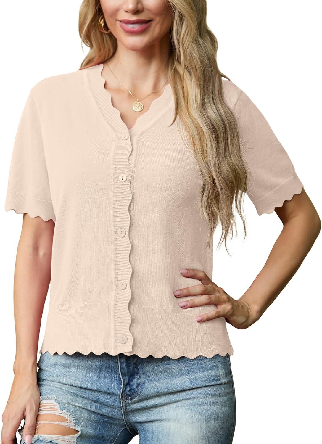 GRECERELLE Womens Summer Lightweight Short Sleeve Cropped Cardigan V-Neck Knit Sweater Shrug for Dressy(Apricot)