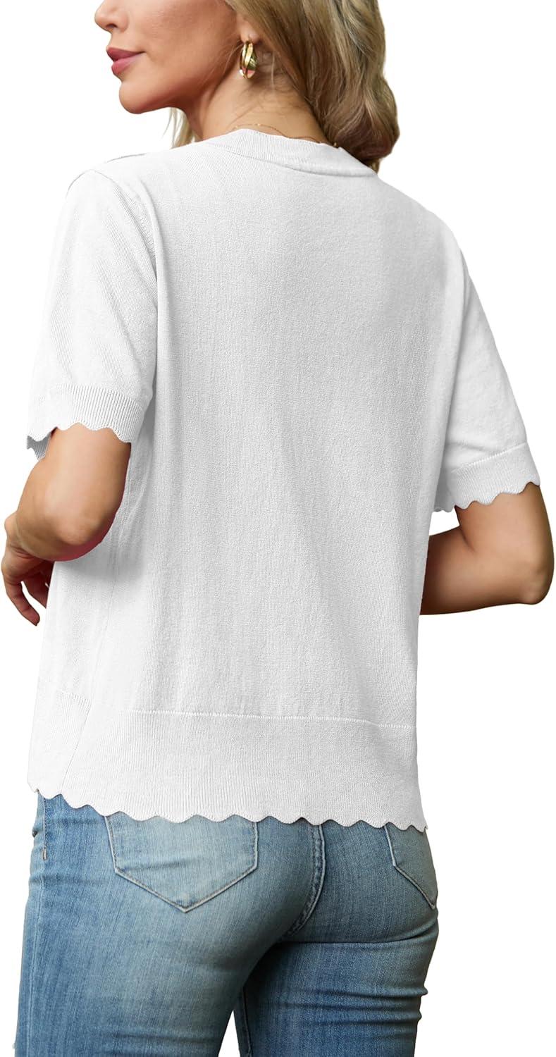 GRECERELLE Womens Summer Lightweight Short Sleeve Cropped Cardigan V-Neck Knit Sweater Shrug for Dressy(White)