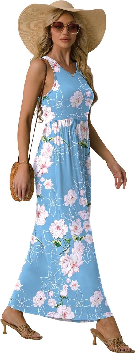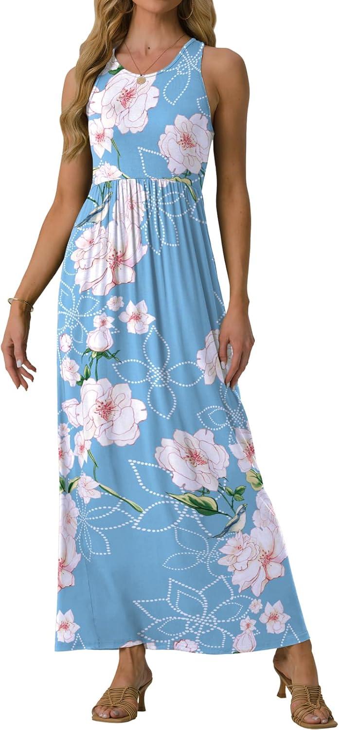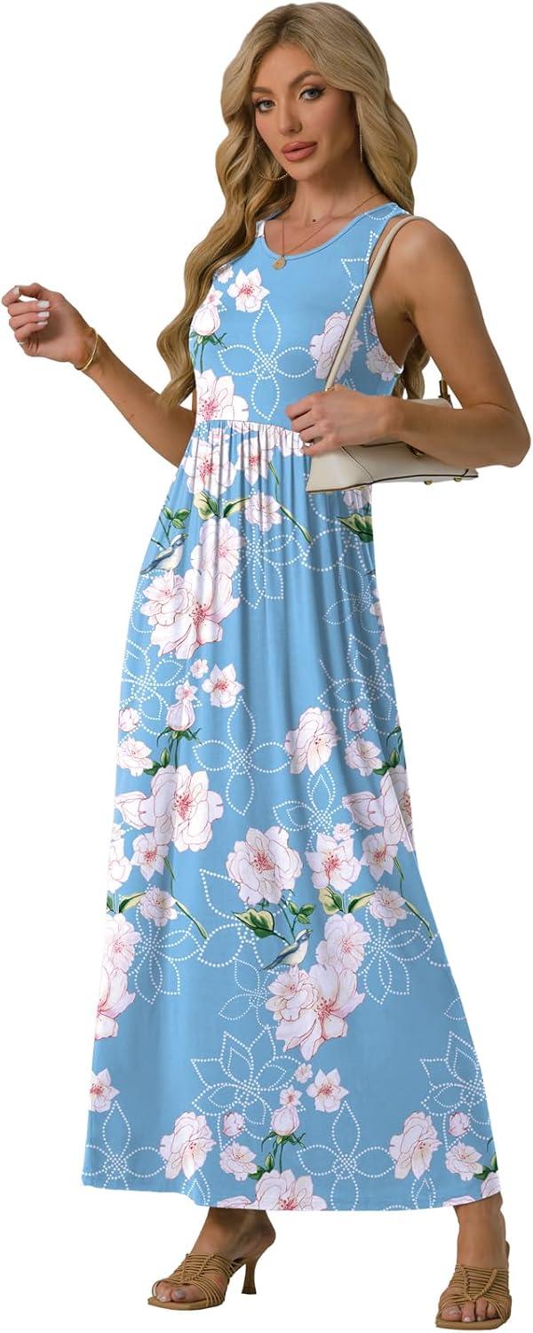 GRECERELLE Women's Summer Sleeveless Casual Long Tank Maxi Dress with Pockets (XS-3XL)(Floral Light Blue)