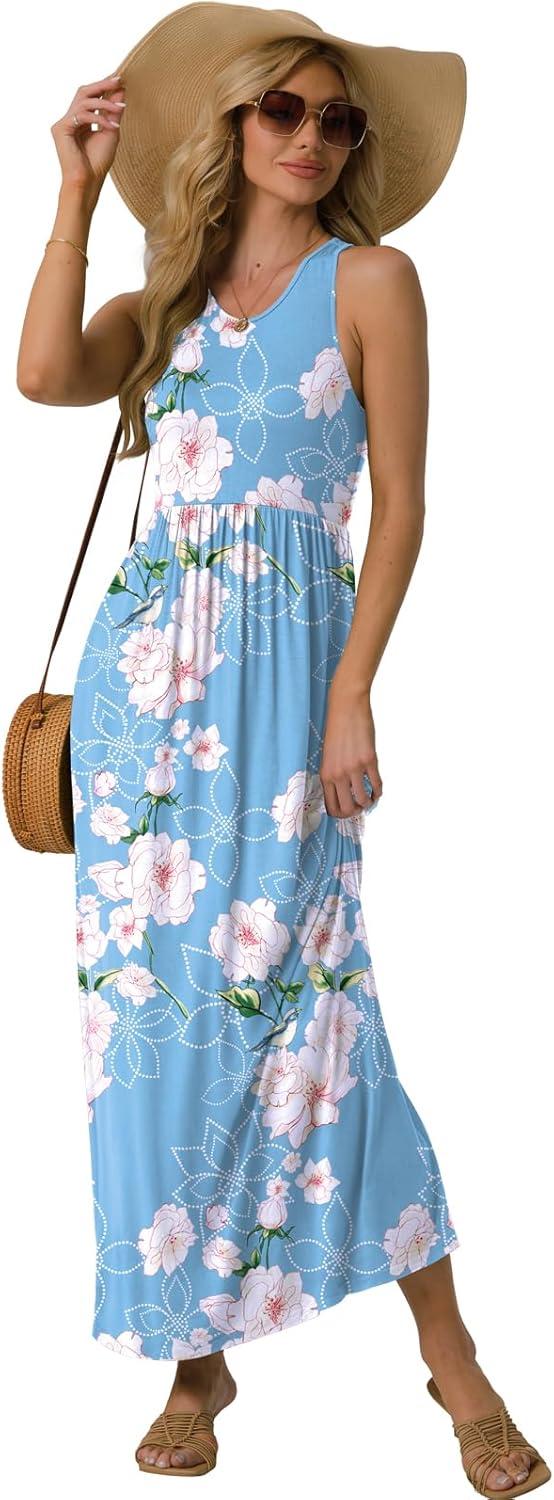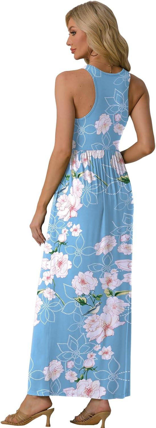 GRECERELLE Women’s Summer Sleeveless Casual Long Tank Maxi Dress with Pockets (XS-3XL)(Floral Light Blue)