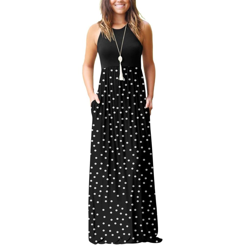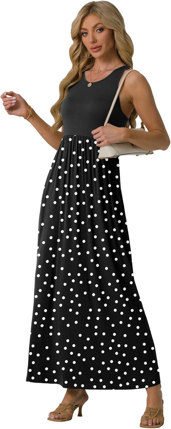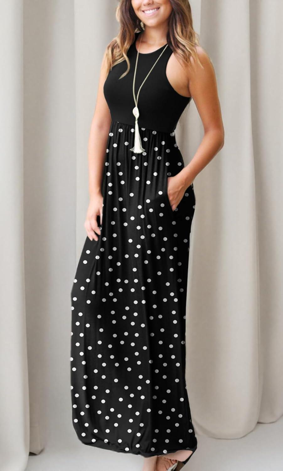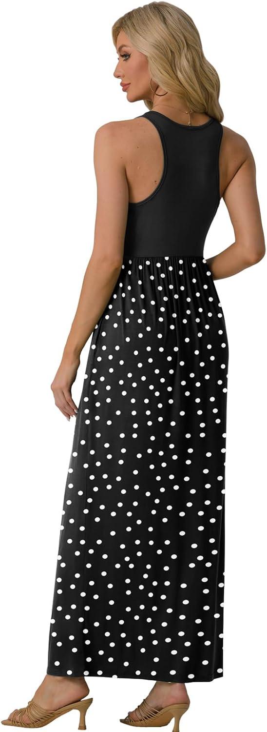 GRECERELLE Women’s Summer Sleeveless Casual Long Tank Maxi Dress with Pockets (XS-3XL)(Polka Dot White Black)