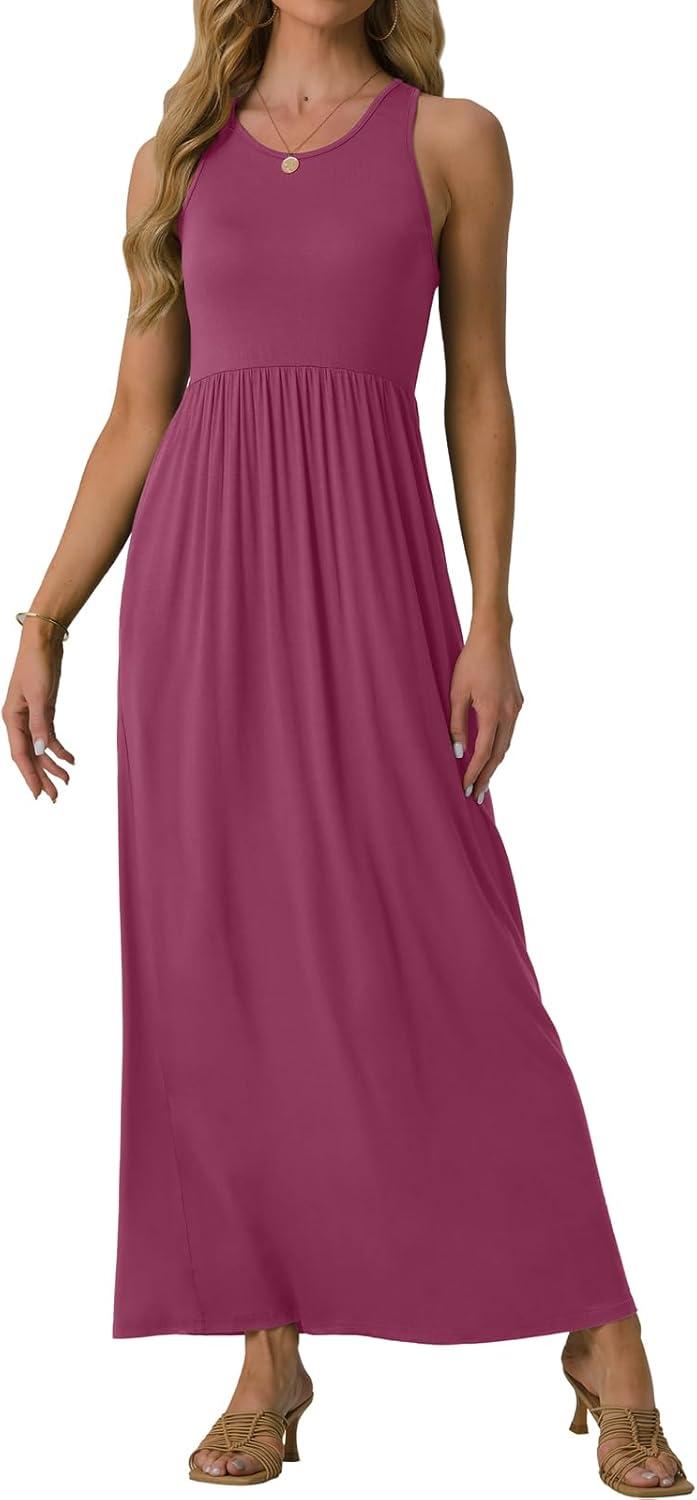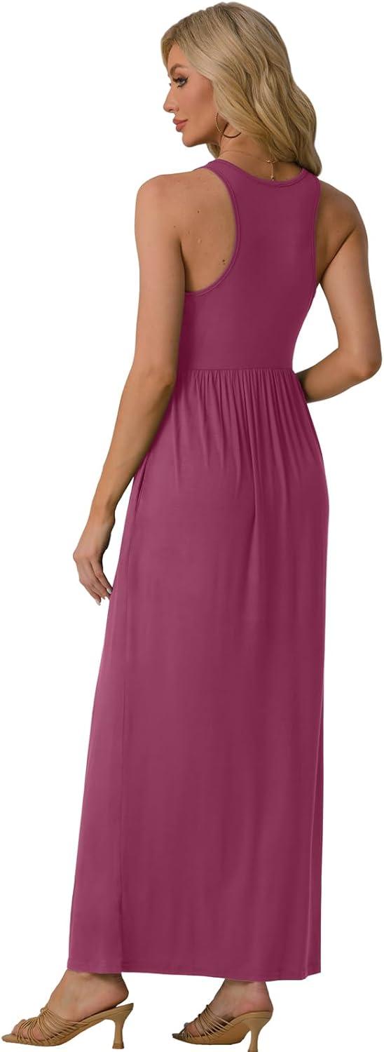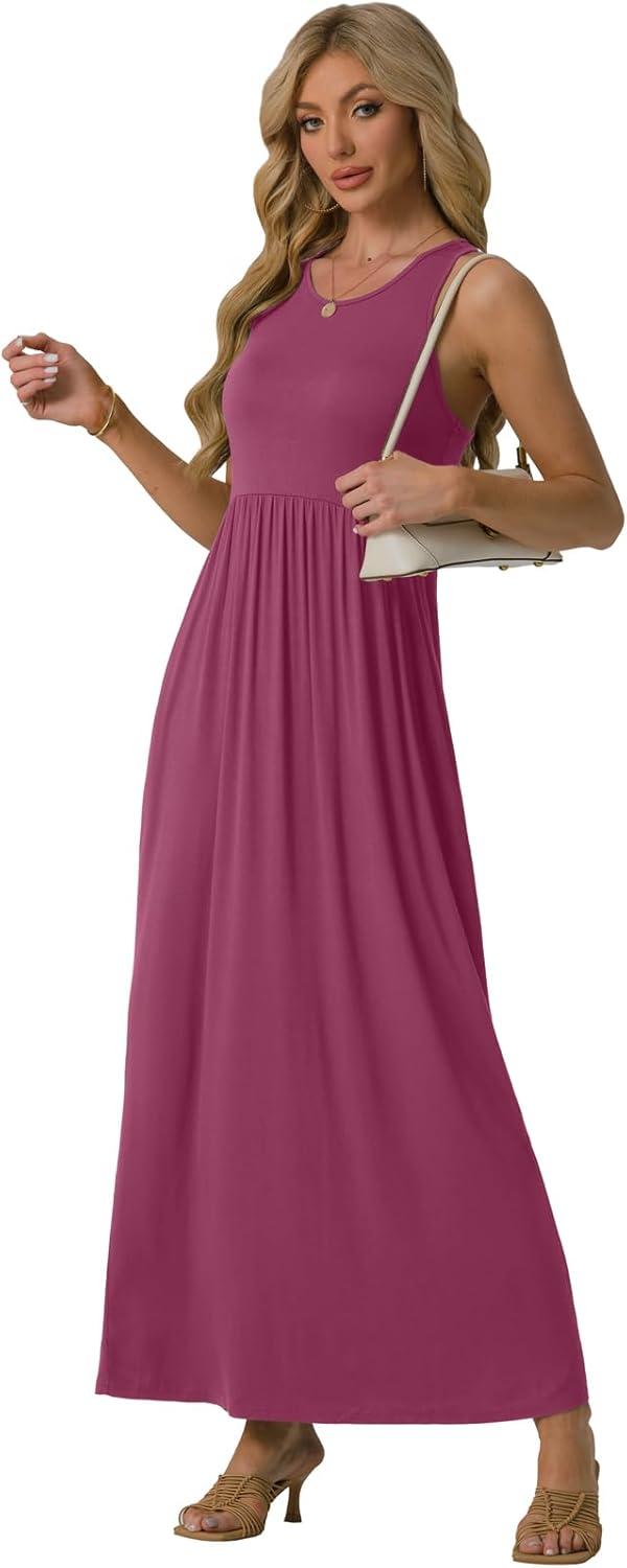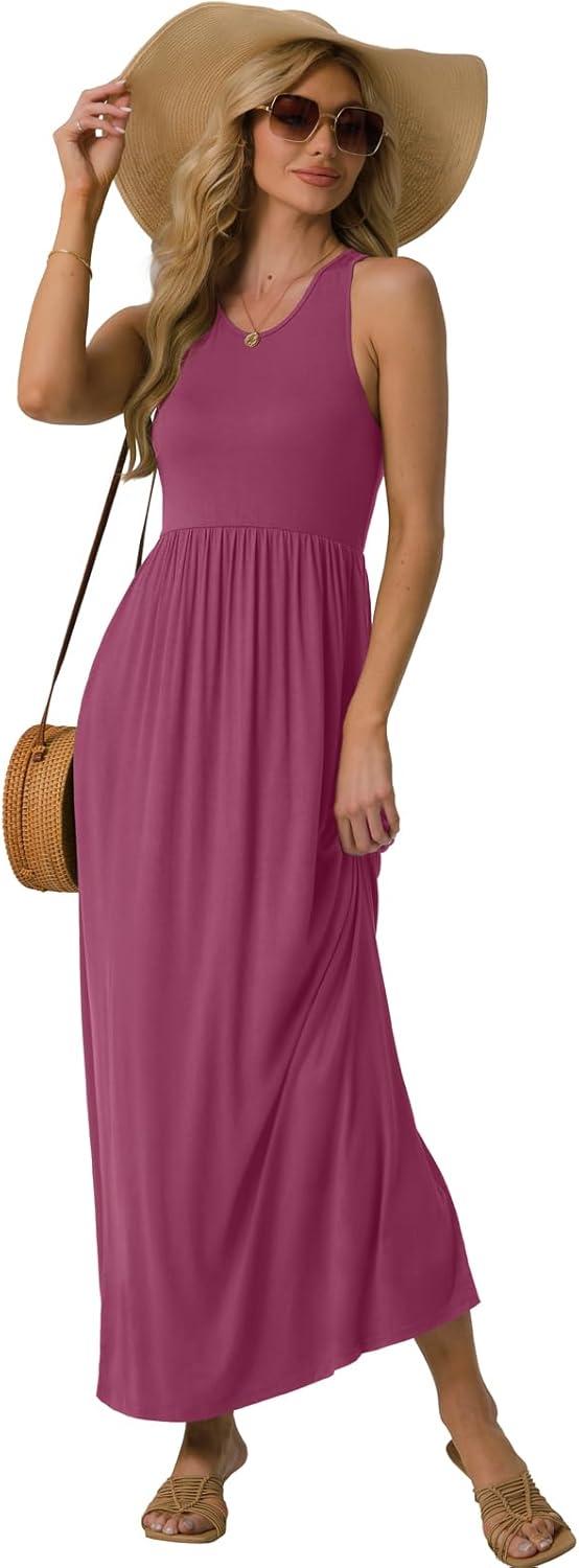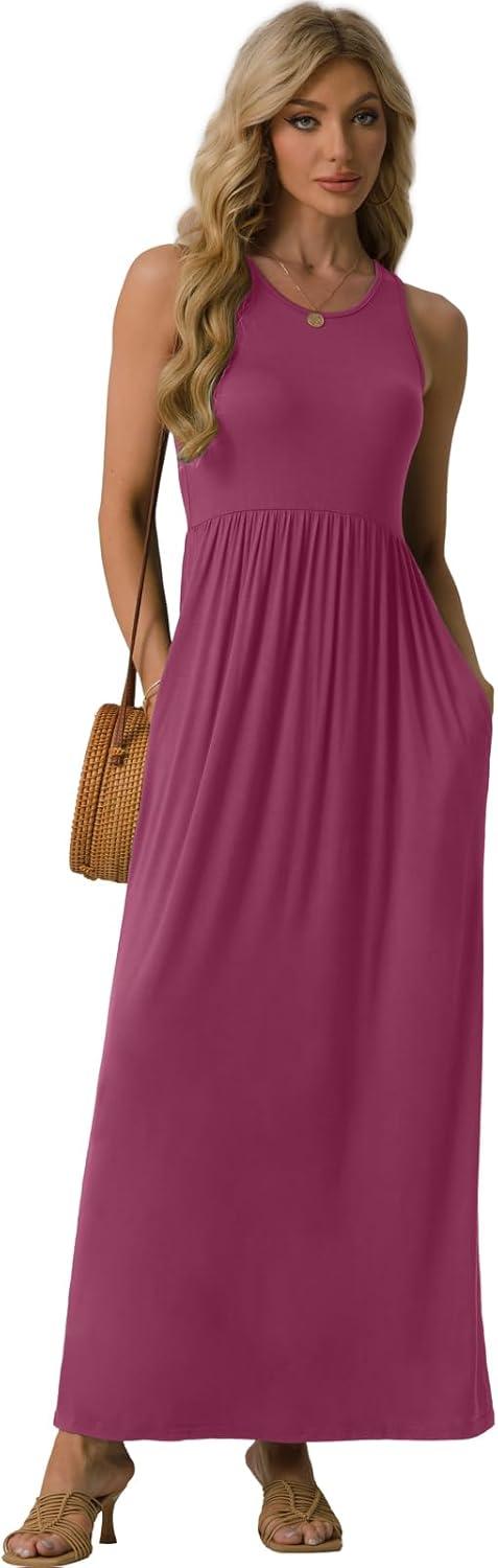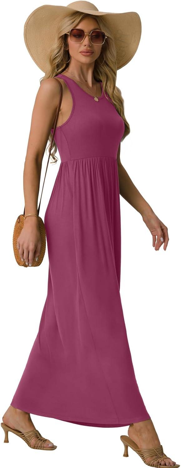 GRECERELLE Women’s Summer Sleeveless Casual Long Tank Maxi Dress with Pockets (XS-3XL)(Red Gray)