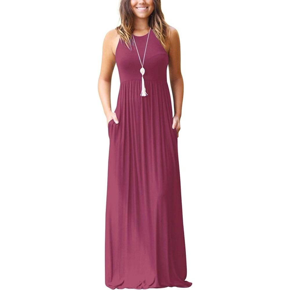 imageGRECERELLE Womens Summer Sleeveless Casual Long Tank Maxi Dress with Pockets XS3XLRed Gray