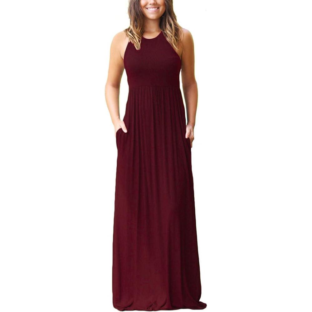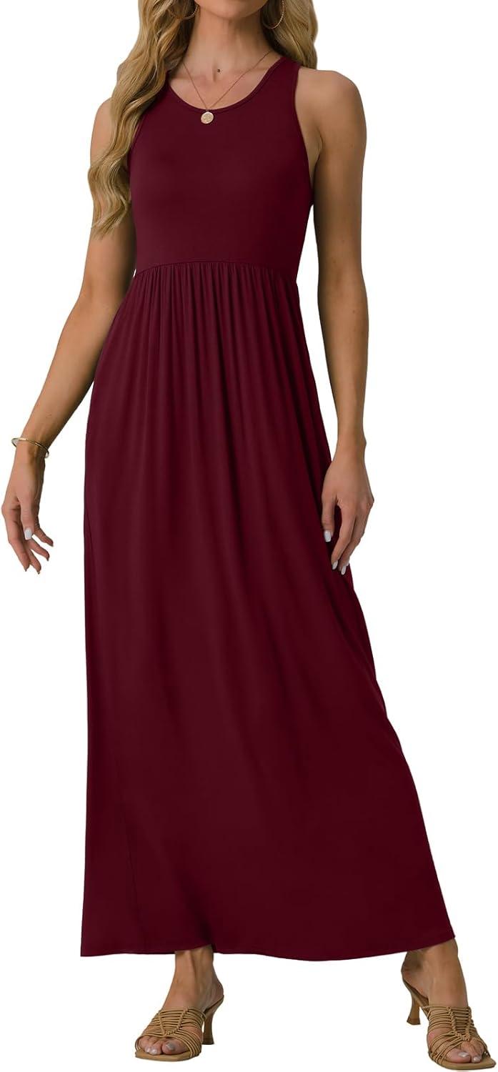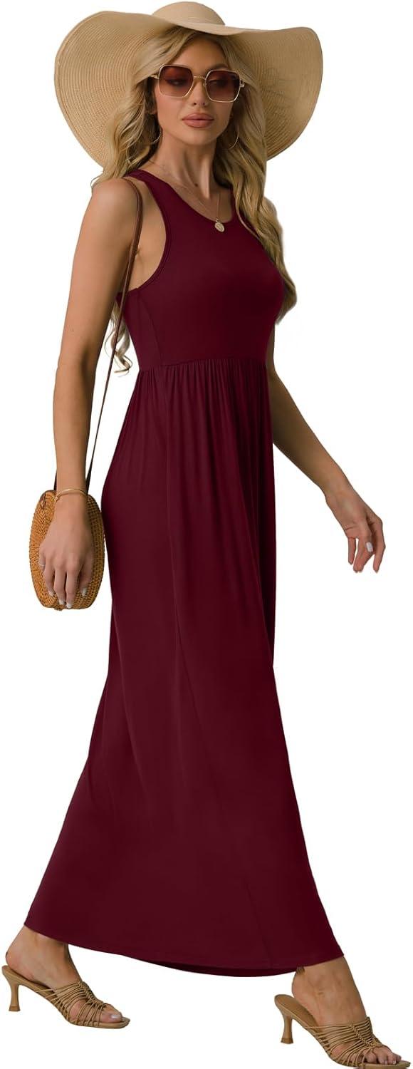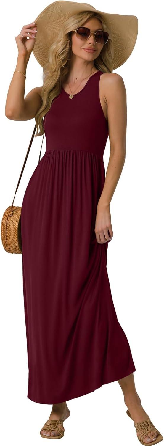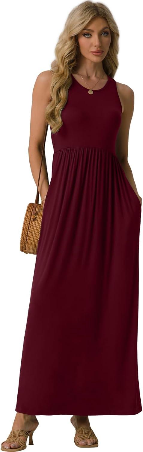 GRECERELLE Women's Summer Sleeveless Casual Long Tank Maxi Dress with Pockets (XS-3XL)(Wine Red)