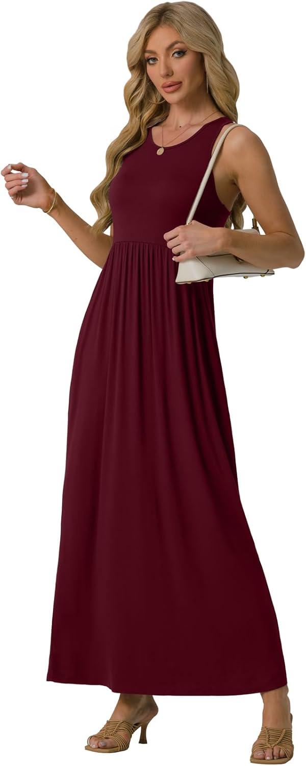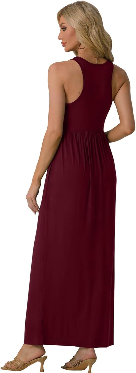 GRECERELLE Women’s Summer Sleeveless Casual Long Tank Maxi Dress with Pockets (XS-3XL)(Wine Red)