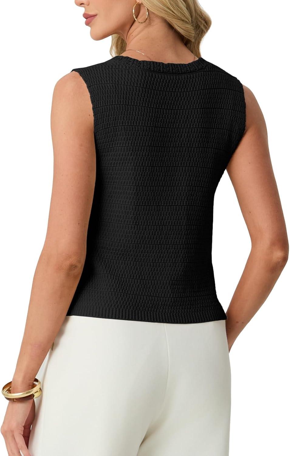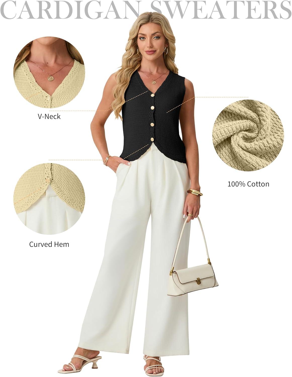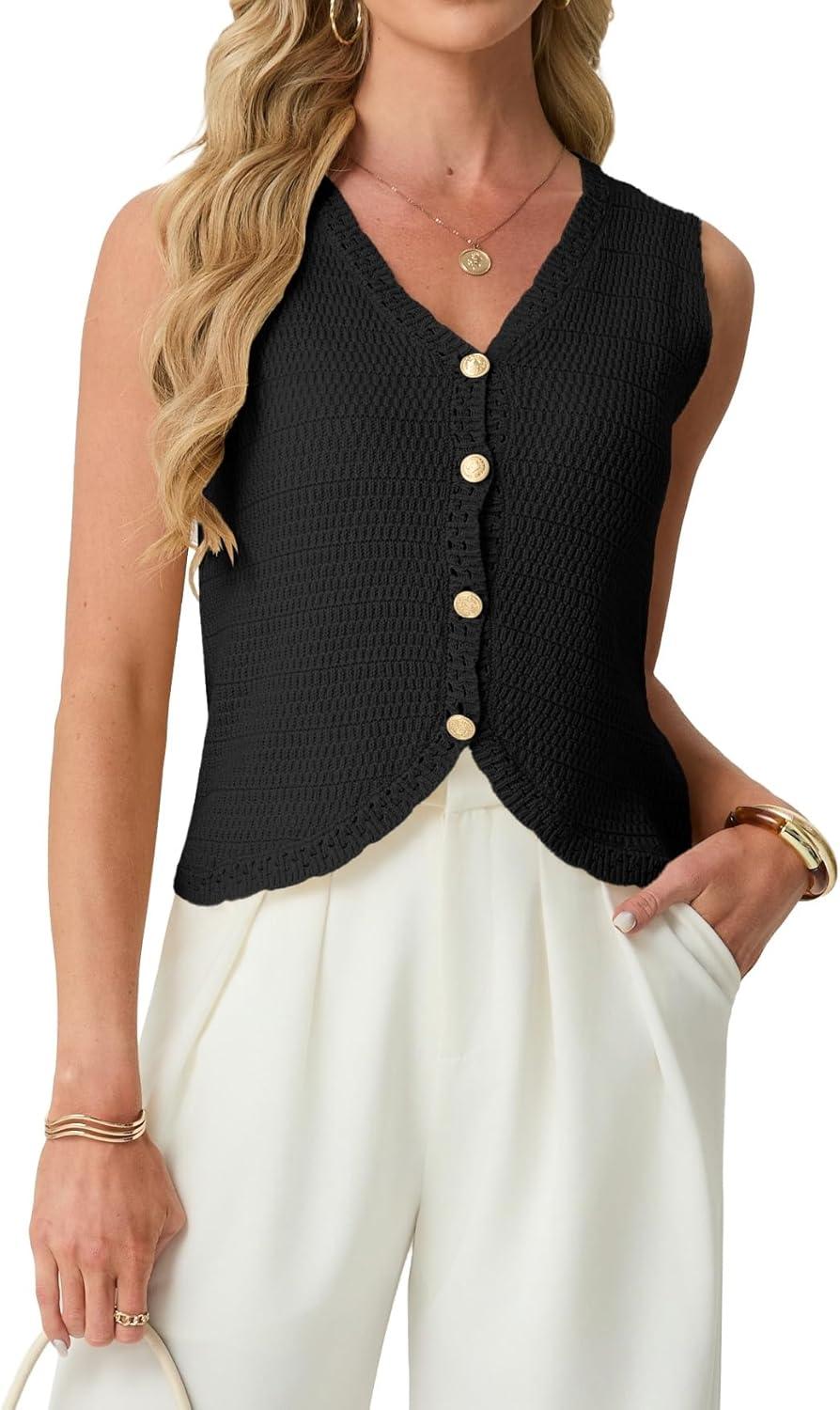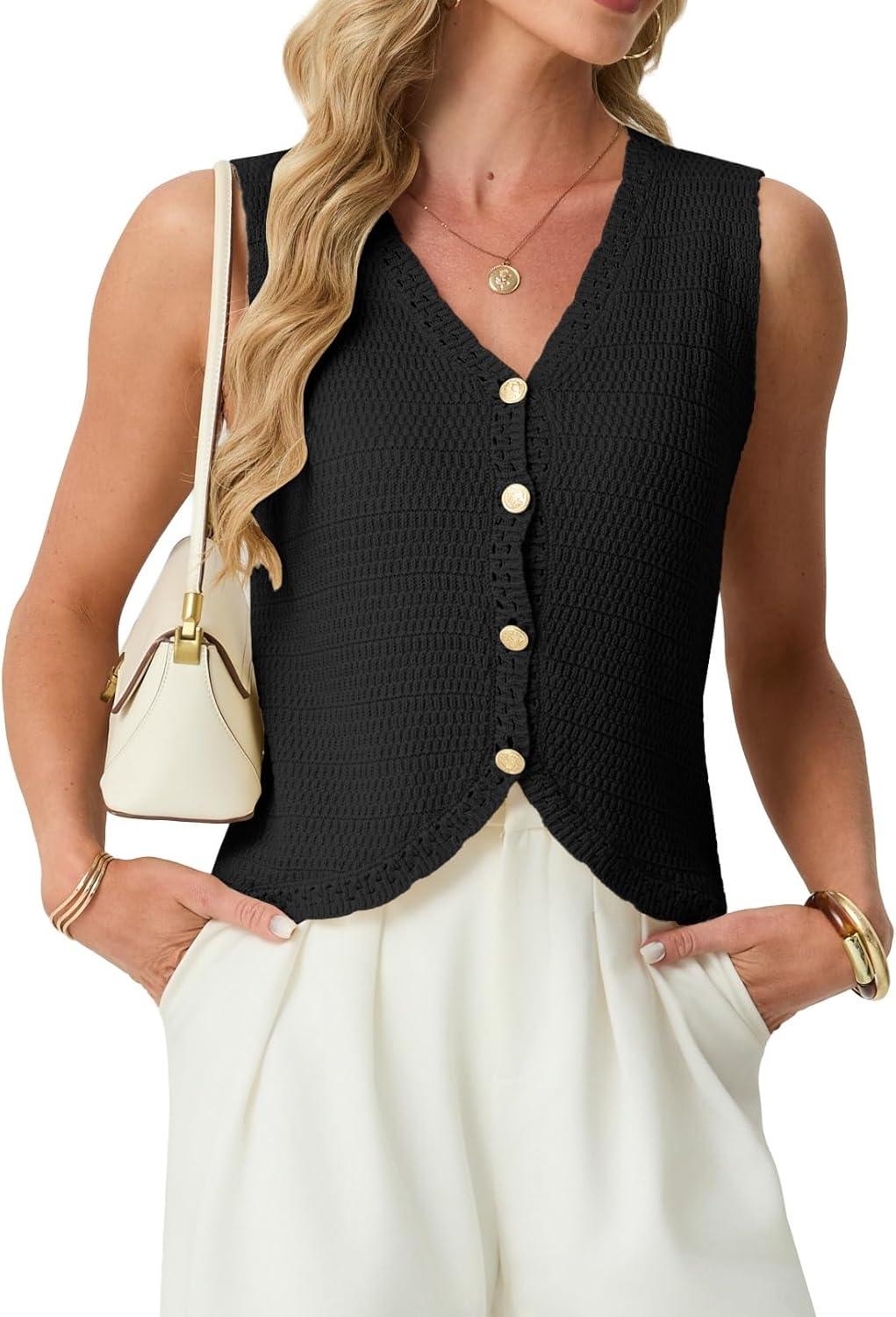 GRECERELLE Womens Summer Sleeveless Sweater Vest – V Neck Knit Button Down Casual Tank Tops(A-black)